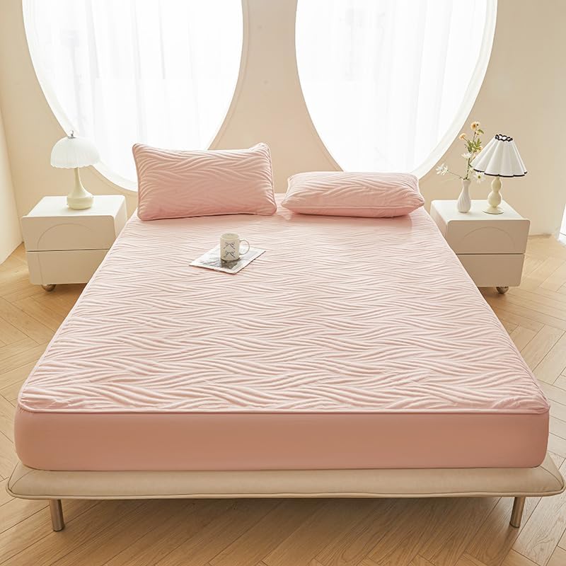 This high-quality mattress protector is designed to offer maximum comfort and protection for your sleep environment. With its 100% waterproof TPU backing and breathable fabric, it adapts to your needs throughout the year â keeping you warm in winter and cool in summer. The deep pocket design ensures a secure, snug fit on thick mattresses, preventing slipping or bunching while maintaining a clean, elegant look. Whether you're looking for a reliable solution for potty training, nursing, or simply to keep your mattress safe and fresh, this protector is a must-have for any bedroom.
