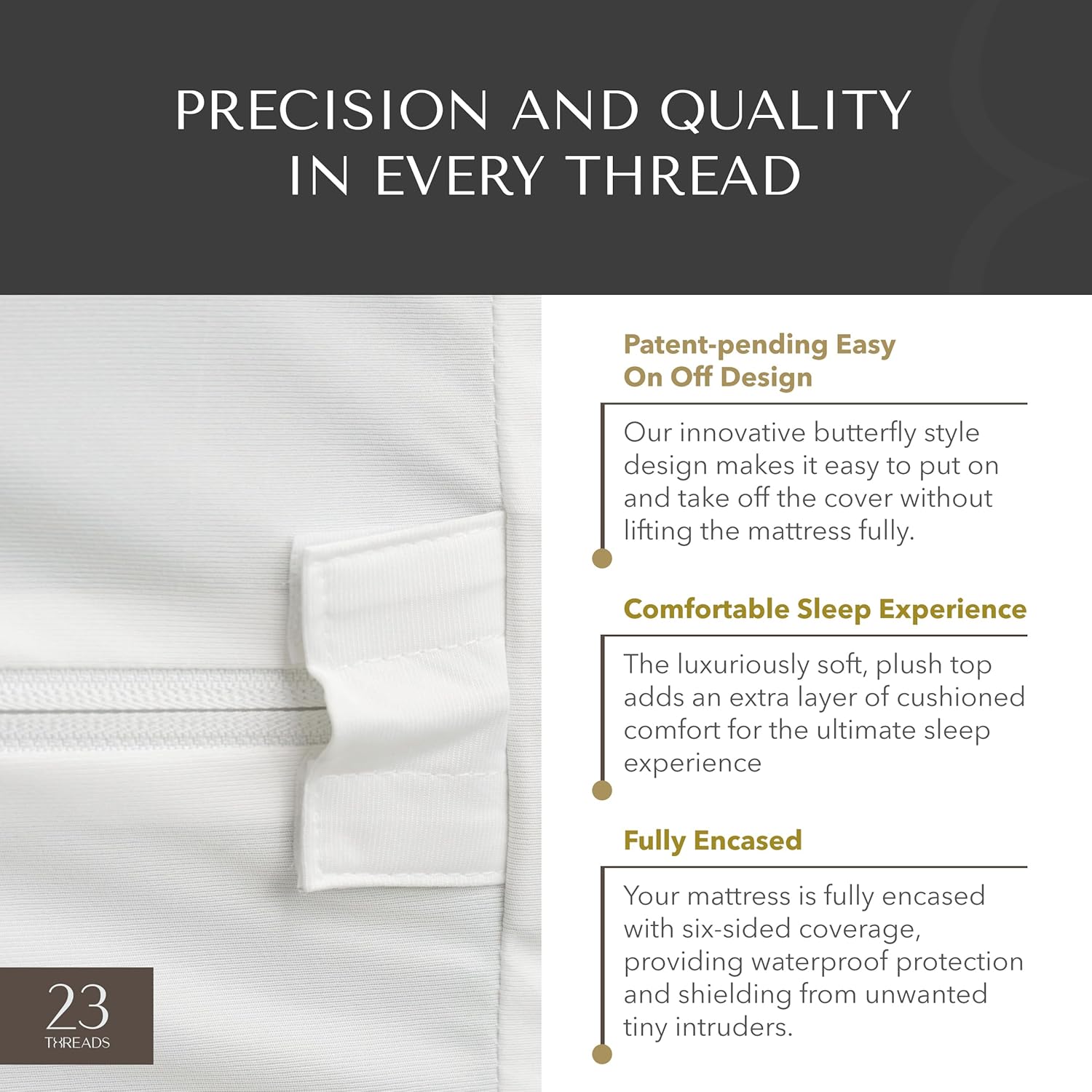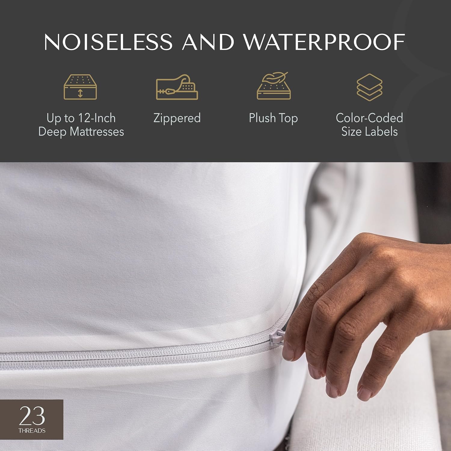 Keep your mattress safe, clean, and comfortable with this premium waterproof encasement. Designed for both everyday use and seasonal changes, it offers complete six-sided coverage for standard 12-inch mattresses. The plush top provides a soft, restful sleep surface while the noiseless and waterproof build ensures your mattress stays protected from spills, sweat, and pests.