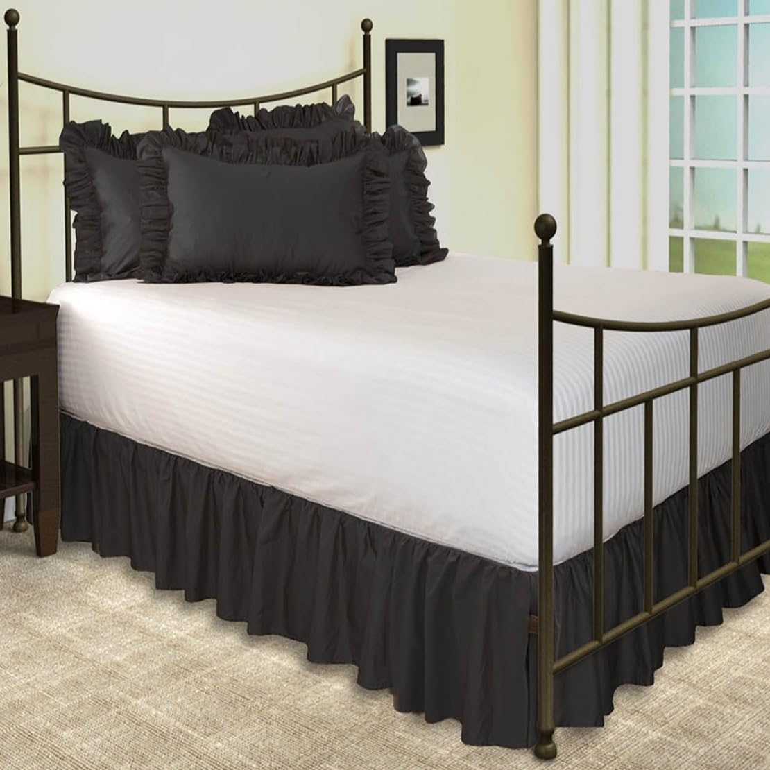 This dust ruffled bedskirt is designed to enhance both the style and functionality of your bedroom. Made from premium 700 TC Egyptian cotton, it offers a perfect blend of softness, breathability, and long-lasting durability. The 10-inch drop length ensures it covers the mattress neatly, while the attached platform provides added support and makes installation a breeze.