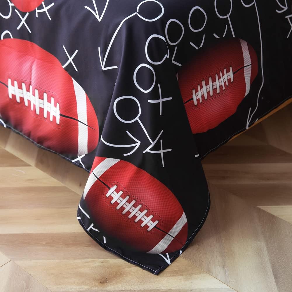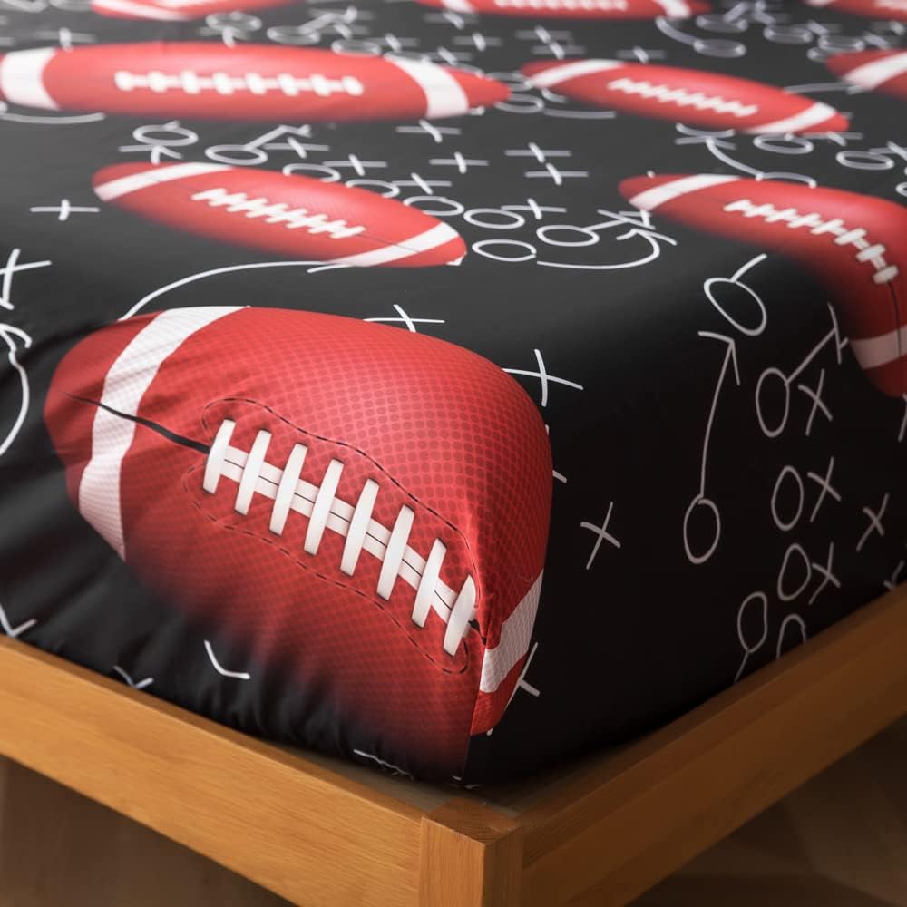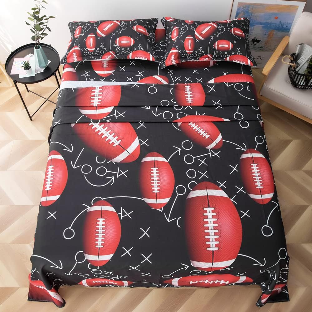 Bring excitement and comfort to your child's bedroom with the ADASMILE A & S Sports Queen Bedding Set. This 4-piece set features a high-definition 3D printed American football design that adds a dynamic and playful touch to any room. Whether it's a boys' or girls' space, the bold theme is sure to make bedtime more enjoyable for your child. Crafted from 100% brushed microfiber, the set is soft, breathable, and safe for kids. The deep pocket fitted sheet with elastic around the edges ensures a secure and snug fit on mattresses up to 14\" deep, making it ideal for a cozy night's sleep. Whether it's a birthday, holiday, or a unique gift idea, this Football-themed Bedding Set is a great way to create a fun and personalized space. It works well for kids' rooms, guest rooms, RVs, or even vacation homes. The ADASMILE A & S Kids Sports Bedding Set is designed for lasting quality. It's machine-washable and machine-dryable, so you can keep it looking fresh and new for years to come. Upgrade your child's room with a set that combines style, comfort, and durability. Ideal for making sleeping a memorable experience.Kids Sports Bedding Set