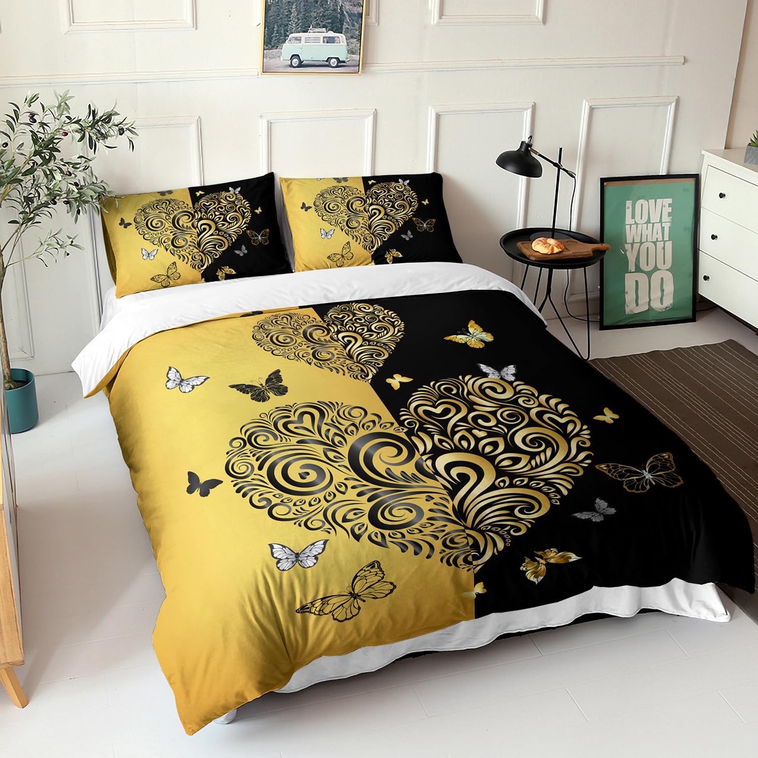 Transform your bedroom into a cozy, cheerful space with this stunning AILONEN duvet cover set. Featuring a vibrant golden yellow and black heart print, the design adds a playful and eye-catching element to any decor. The advanced digital printing technology ensures that the colors remain vivid and clear, even after numerous washes, keeping your bedding looking fresh and new.