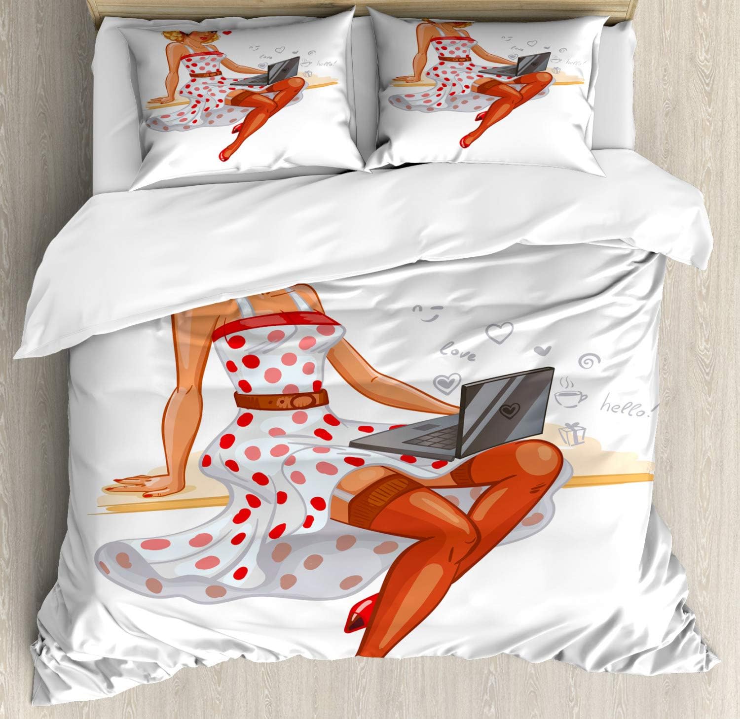 Shop now and bring a touch of nostalgia and style to your bedroom with the Ambesonne Pin Up Girl Duvet Cover Set.