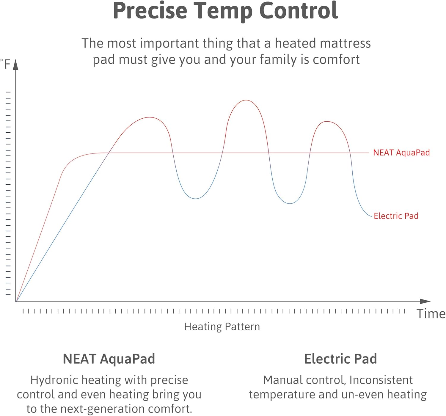 Experience the perfect blend of comfort, safety, and efficiency with the AquaPad CozyFlow. This innovative heated mattress pad is designed to provide optimal warmth without compromising on peace of mind. Engineered in California by our team, it combines eco-friendly materials with cutting-edge hydronic heating technology to deliver up to 149°F of consistent, even heat.
