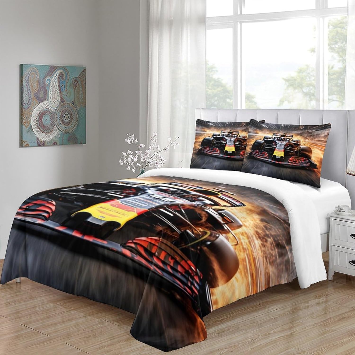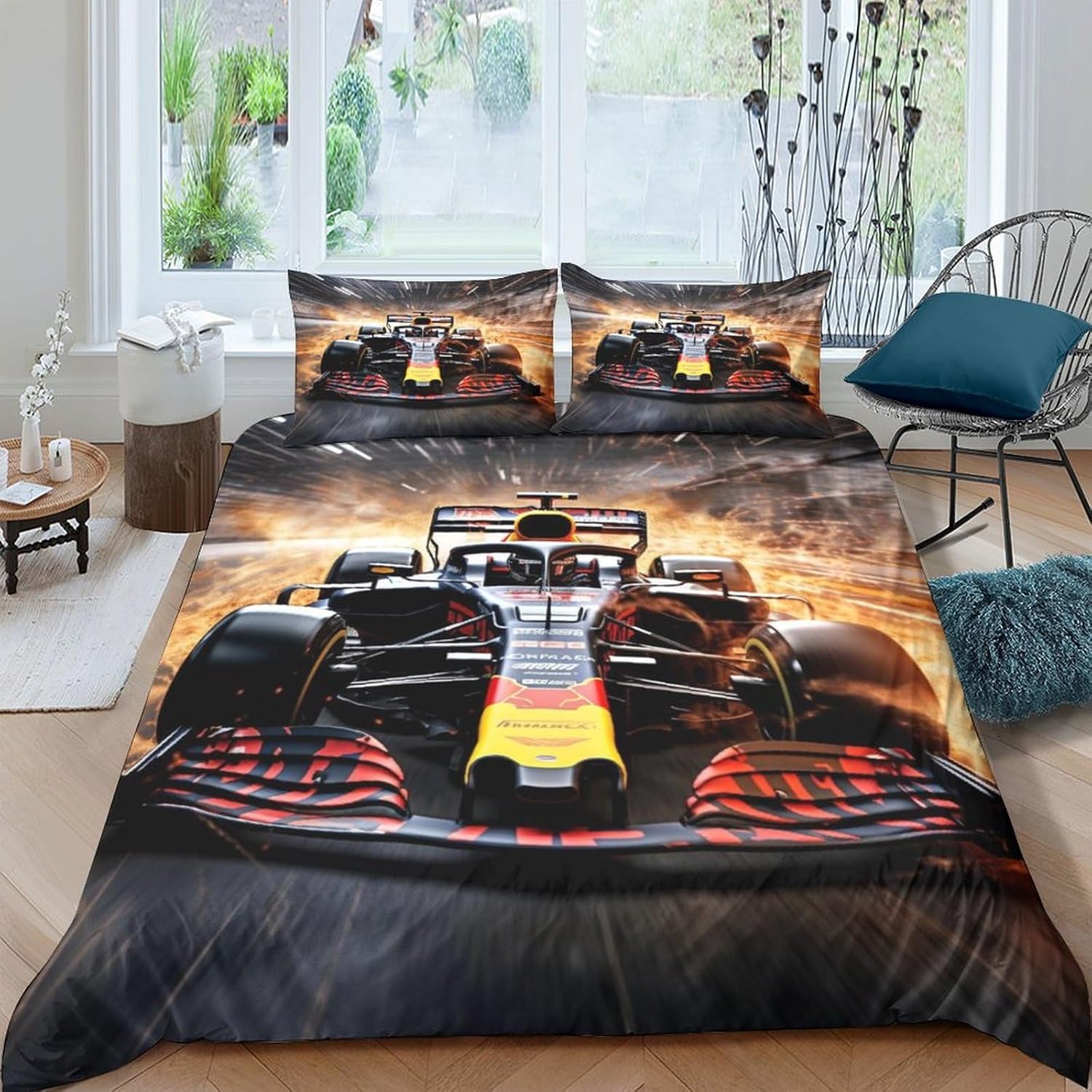 Add a touch of excitement to your childâs bedroom with the BUKISA Formula-One Racing Bedding Set. This stylish and comfortable collection features soft, durable microfiber that wonât fade or lose its shape over time. Designed with a hidden zipper closure, it makes washing and maintenance effortless, while the double-stitched edges ensure a neat and long-lasting finish.