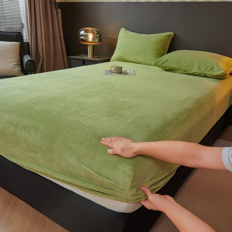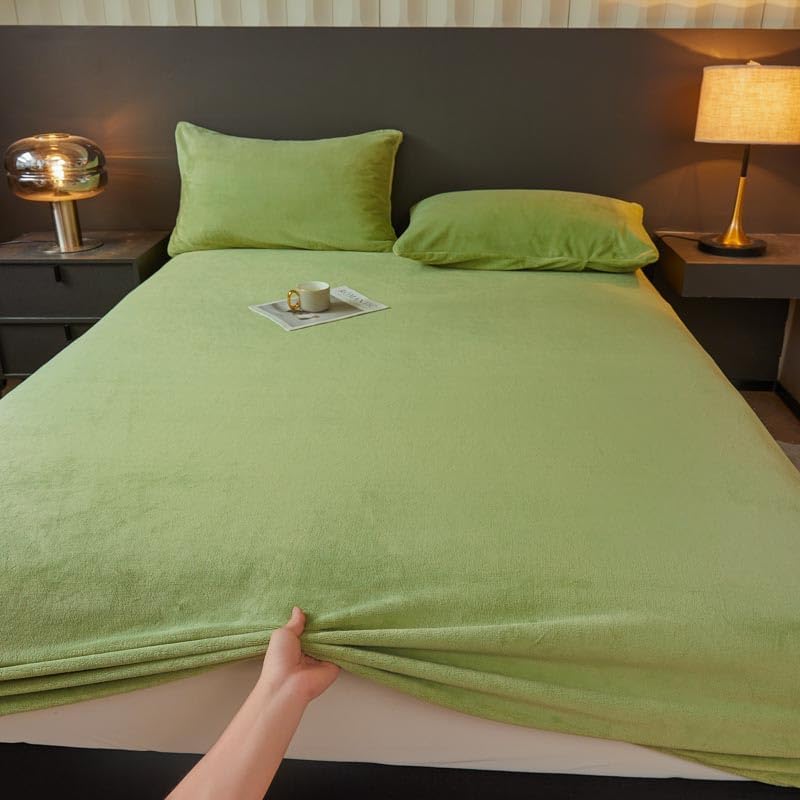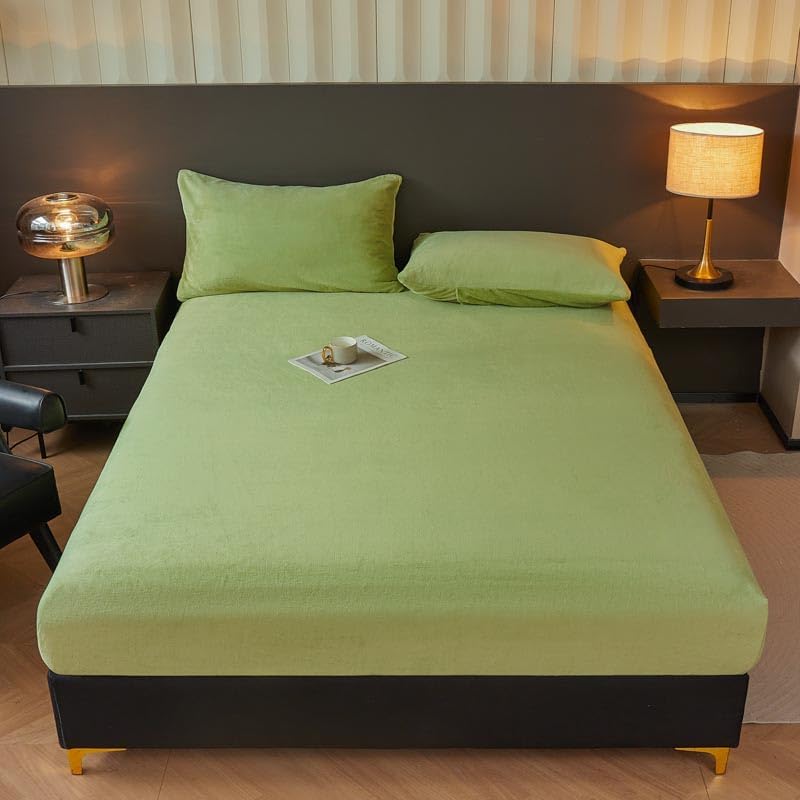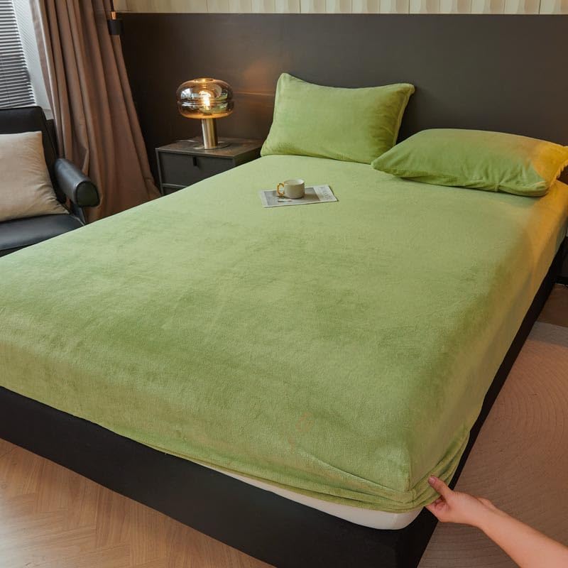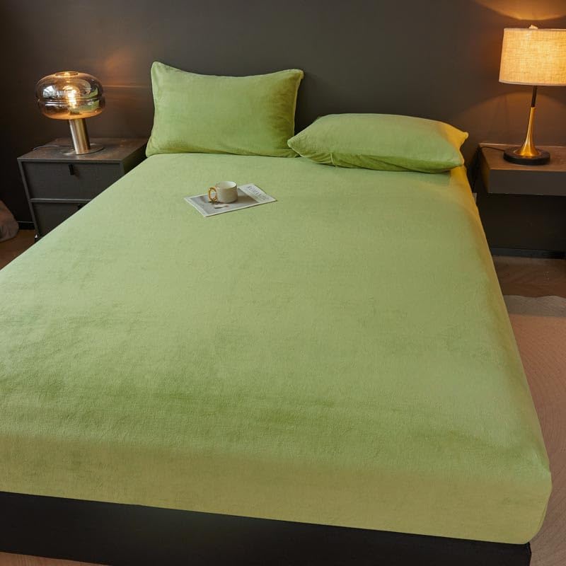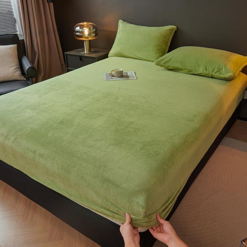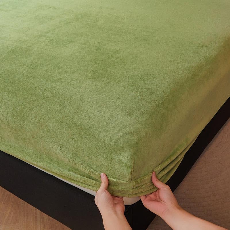 BYHIP Crystal Velvet Fitted Sheet Twin Size Green