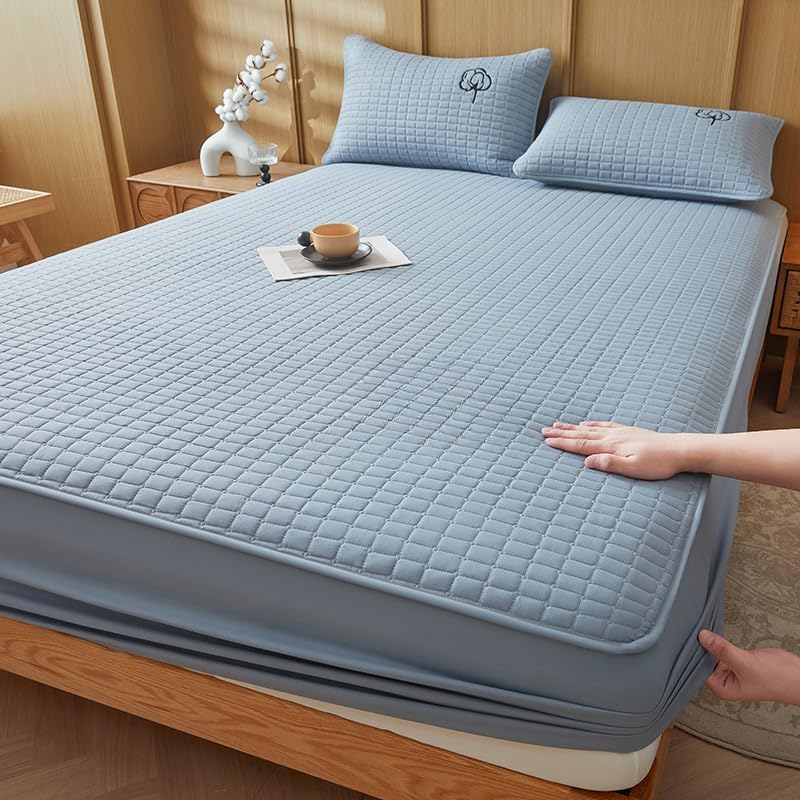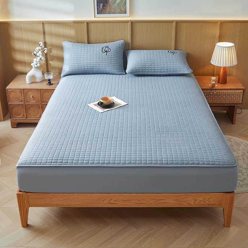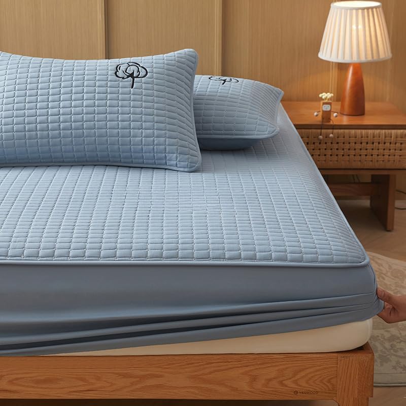 Crafted with a unique quilted design, this mattress protector delivers silent comfort, eliminating the annoying crinkly sounds that often disturb your rest. Its dual-layer construction includes premium 3D air circulation fabric and a soft cotton-rich terry surface, ensuring your mattress stays cool and dry throughout the night, making it ideal for hot sleepers and those prone to sweating.
