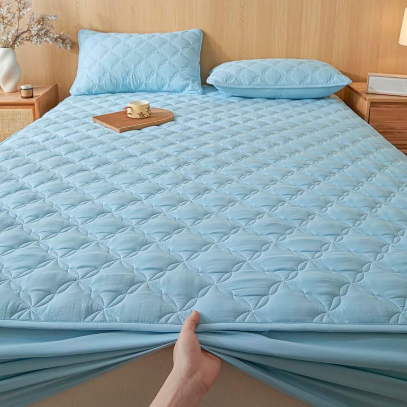 Designed for comfort, safety, and style, the BYHIP Quilted Mattress Pad is the perfect addition to any bedroom. With a 100% cotton batting layer, it delivers a soft, cozy feel thatâs gentle on your skin and ideal for a restful nightâs sleep. The waterproof and breathable design keeps your mattress clean and protected from spills, moisture, and stains, while ensuring optimal ventilation.