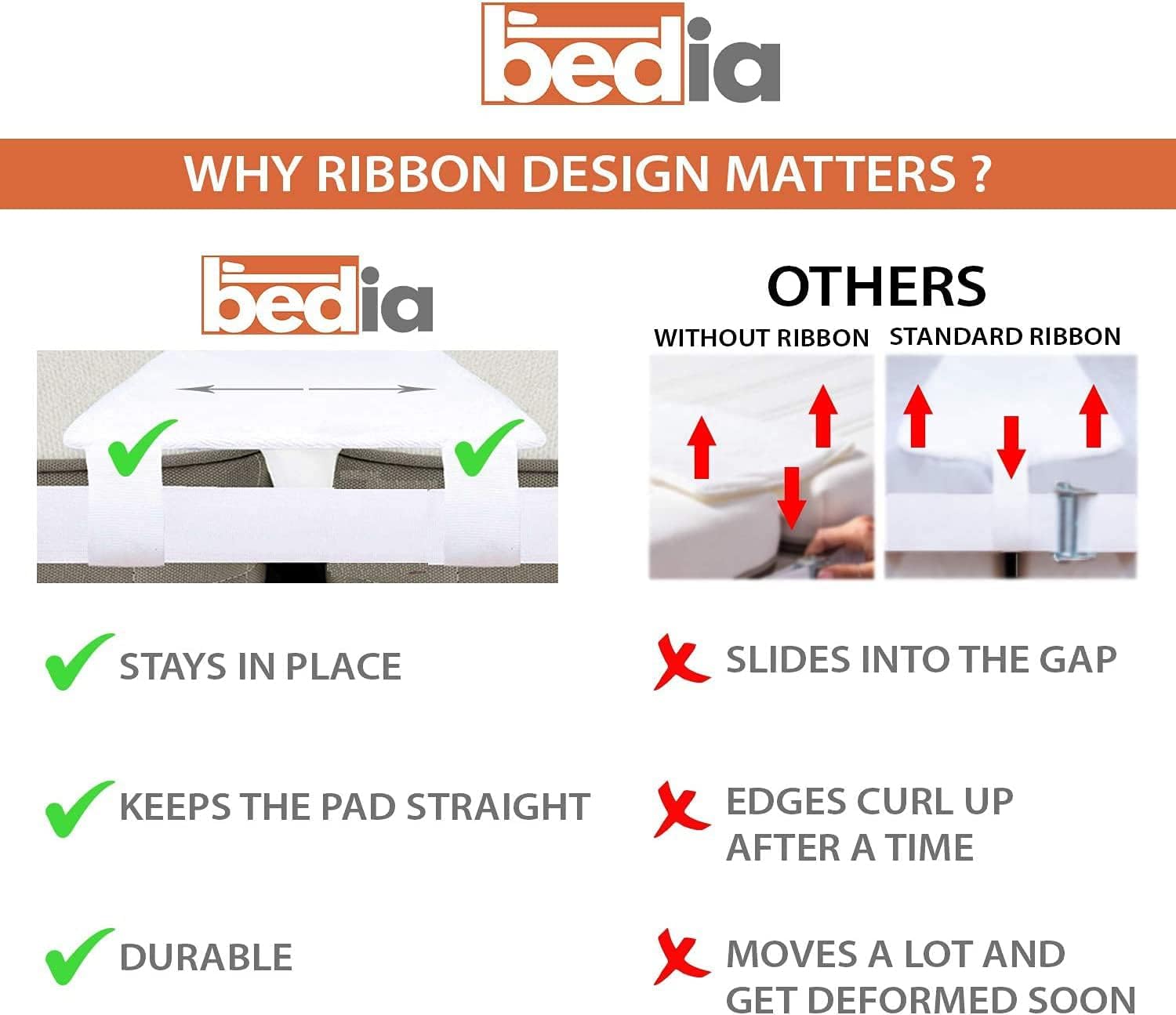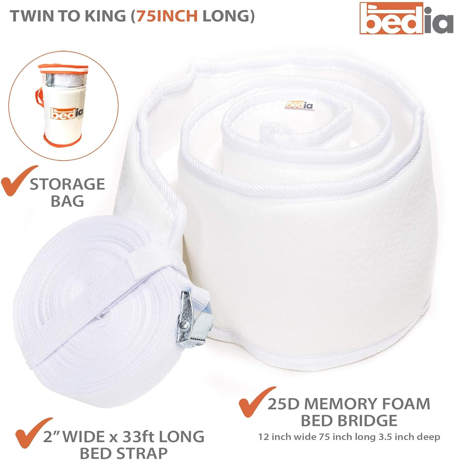 The Bedia Twin XL to King Converter features a 12-inch wide bed bridge pad that ensures full coverage, providing a snug fit and eliminating gaps for a more comfortable and uninterrupted nightâs sleep. Its unique double-ribbon construction keeps the pad tightly in place, preventing any unwanted sliding or shifting. Whether you're looking to expand your bed or connect multiple beds for added length, this versatile solution fits the bill with ease.