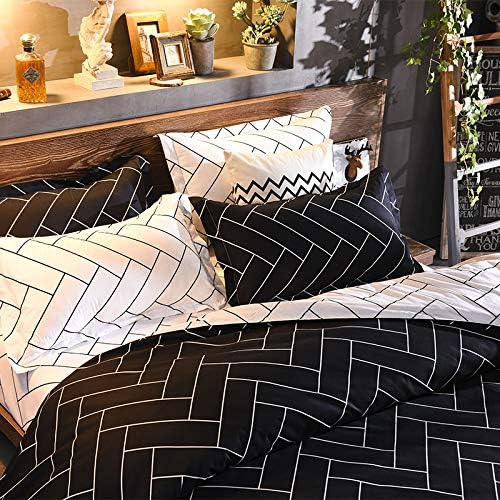 Transform your bedroom with this stunning 3-piece Black Geometric Duvet Cover Set. Designed to blend style and comfort, it features ultra-soft microfiber fabric that wraps your bed in a cloud-like softness. The bold, modern geometric print comes to life through advanced reactive dyeing technology, ensuring vibrant colors that resist fading over time. Perfect for all seasons, this set is available in a range of sizes to suit every need, making it a versatile addition to your space.