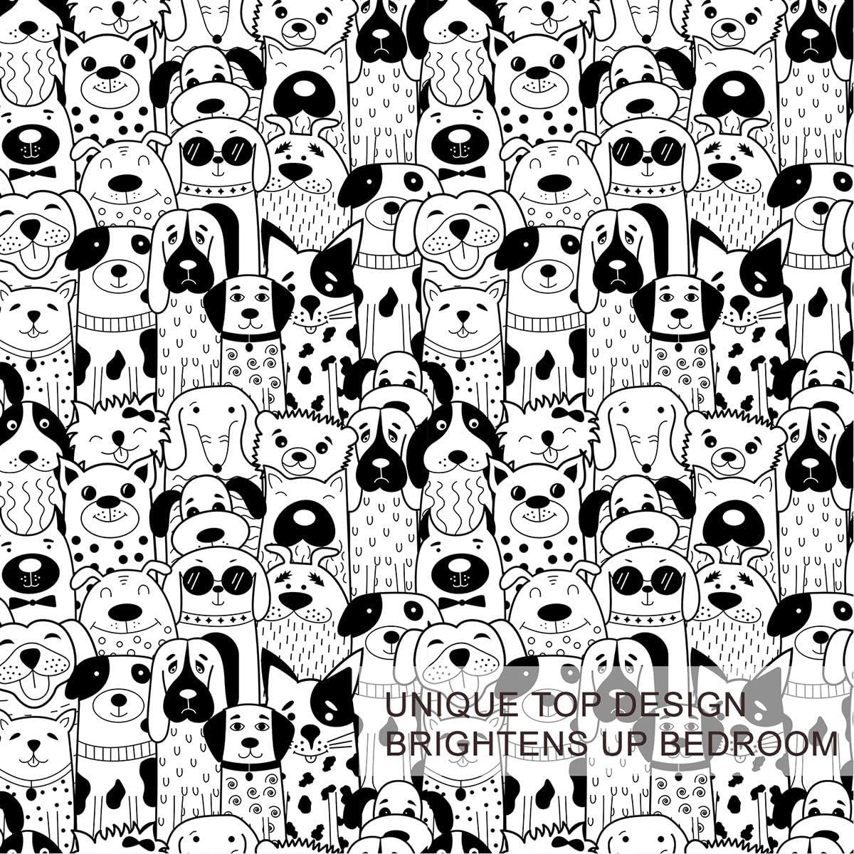 This adorable duvet cover set features a whimsical black and white doodle dog design that is sure to make any room feel more cheerful and cozy. Perfect for dog lovers and young kids, the soft and breathable microfiber fabric ensures a comfortable sleep environment all year round. The set's durable quality makes it a great long-term investment, while the included 3-piece setâ1 duvet cover and 2 pillow casesâfits a queen size bed perfectly. Create a stylish, personalized space that your little one will love and that adds a touch of joy to your home.