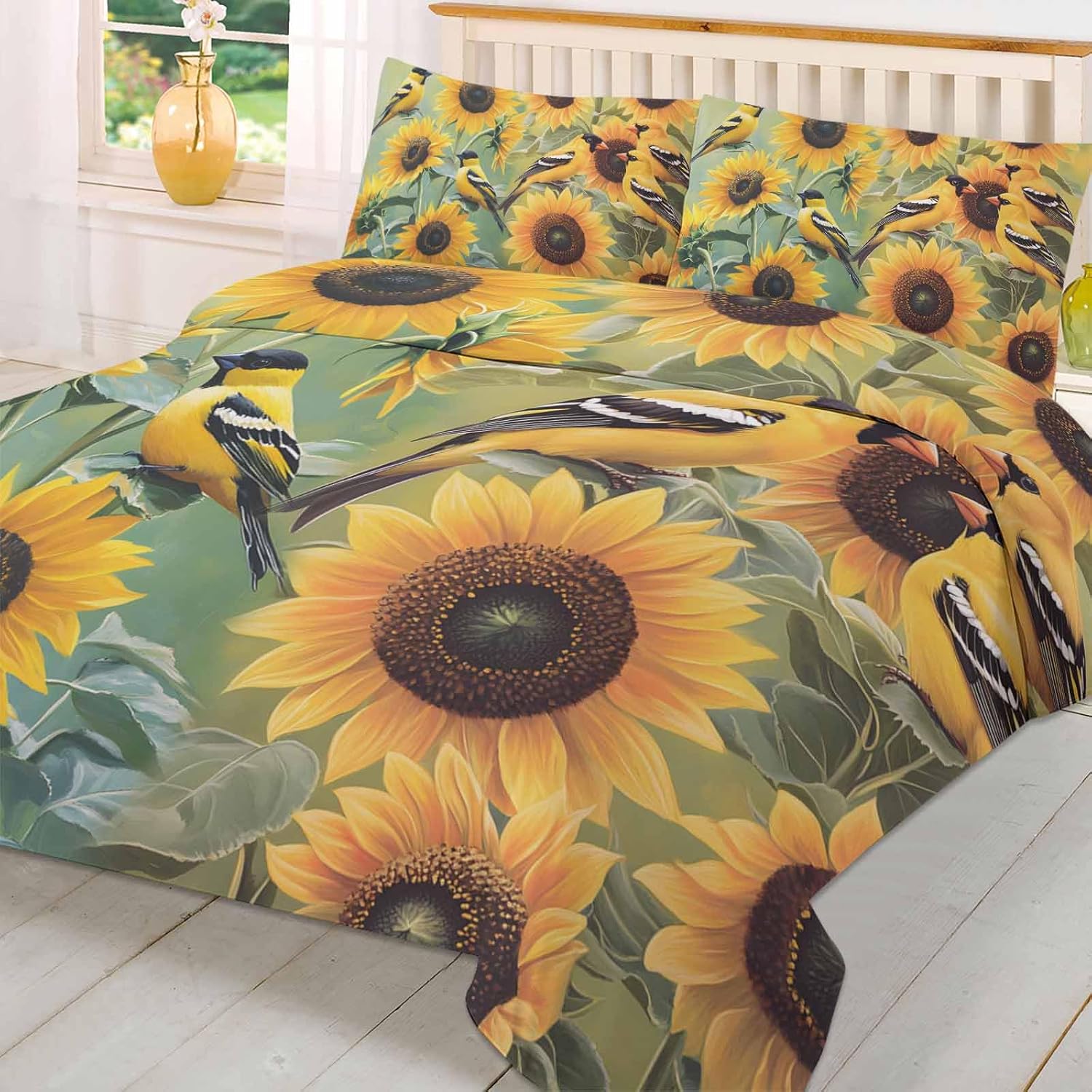 This charming bedding set is designed to add warmth and elegance to your bedroom. The classic yellow sunflowers and birds pattern creates a cheerful, country-inspired atmosphere thatâs perfect for any season.