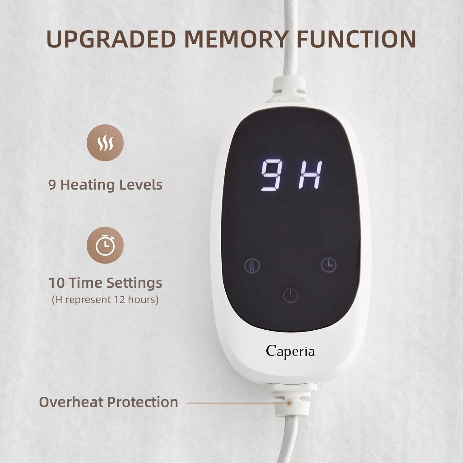Get the perfect night's sleep with the Caperia Heated Mattress Pad. Featuring 9 adjustable heat settings, it allows you to customize your preferred temperature for all-around comfort. Whether you're battling cold floors in the winter or want to enjoy a warm sleep environment year-round, this pad delivers consistent warmth without the need for extra blankets. With a 5-year warranty, Caperia guarantees the durability and reliability of its product, making it a long-term investment for your comfort. Whether you're in a hotel, looking to stay warm while camping, or simply want to add a layer of coziness to your home bed, the Caperia pad adapts to your lifestyle. Its compact design and easy maintenance make it a convenient solution for all seasons. You can rely on Caperia for an exceptional product that delivers comfort, safety, and style in one. It's not just a mattress padâit's your personal warmth companion, designed for ultimate relaxation and sleep quality.Caperia Heated Mattress Pad