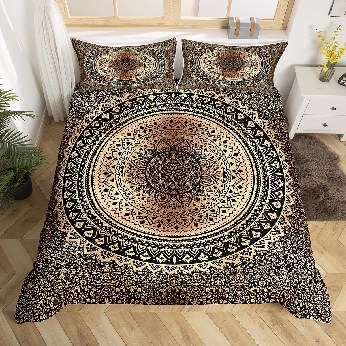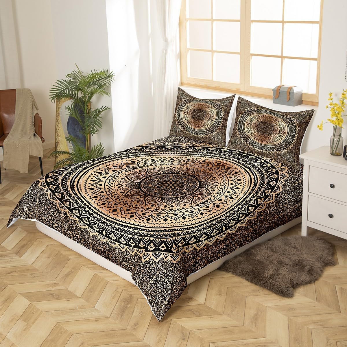 Featuring a bold mandala print in rich brown and black tones, this decorative room bedding set adds a trippy, Boho-inspired atmosphere to any space. The fade-resistant color guarantees that your decor remains stunning for years to come, while the durable construction means it holds up well against everyday wear and tear.
