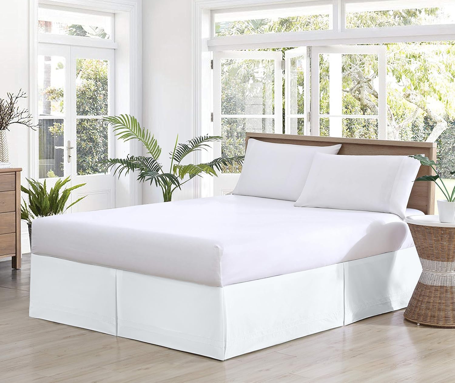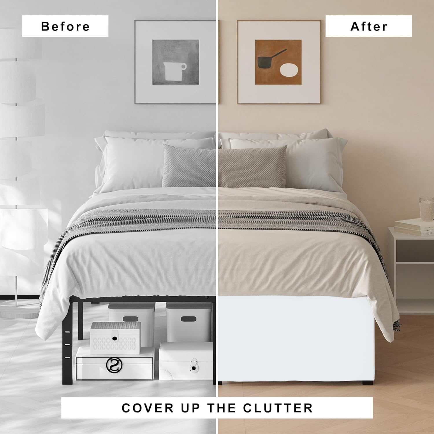 Bring a touch of timeless elegance to your bedroom with this premium white bedskirt. Designed for all standard queen beds, it offers a perfect fit with a 16-inch drop, ensuring a clean and polished look under your bed.