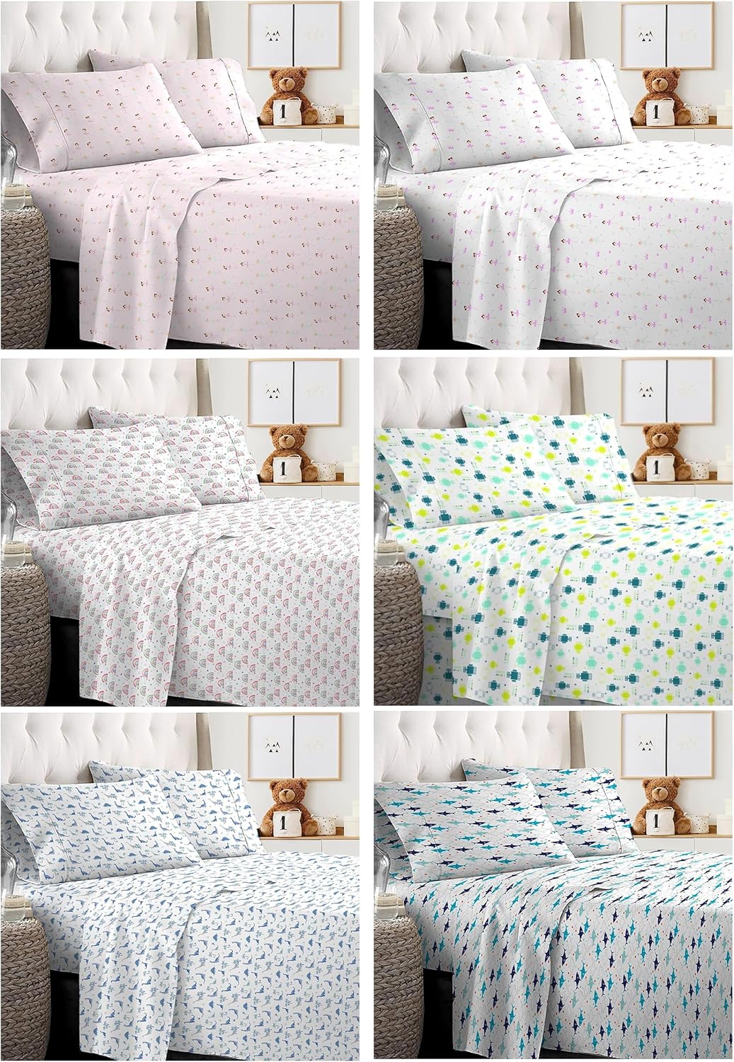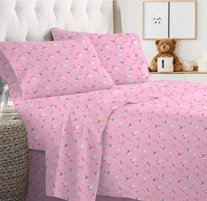 This 4-piece full sheet set brings a perfect balance of comfort and fun for young boys and girls. Crafted from premium polyester microfiber, it offers softness that feels like a gentle hug while standing up to frequent use. The fitted sheet features elastic on all sides for a snug fit and a secure sleep, ensuring your child stays comfortable all night. Paired with two standard pillowcases featuring charming prints, this set adds a playful element to any child's bedroom and serves as a complete bedding solution.
