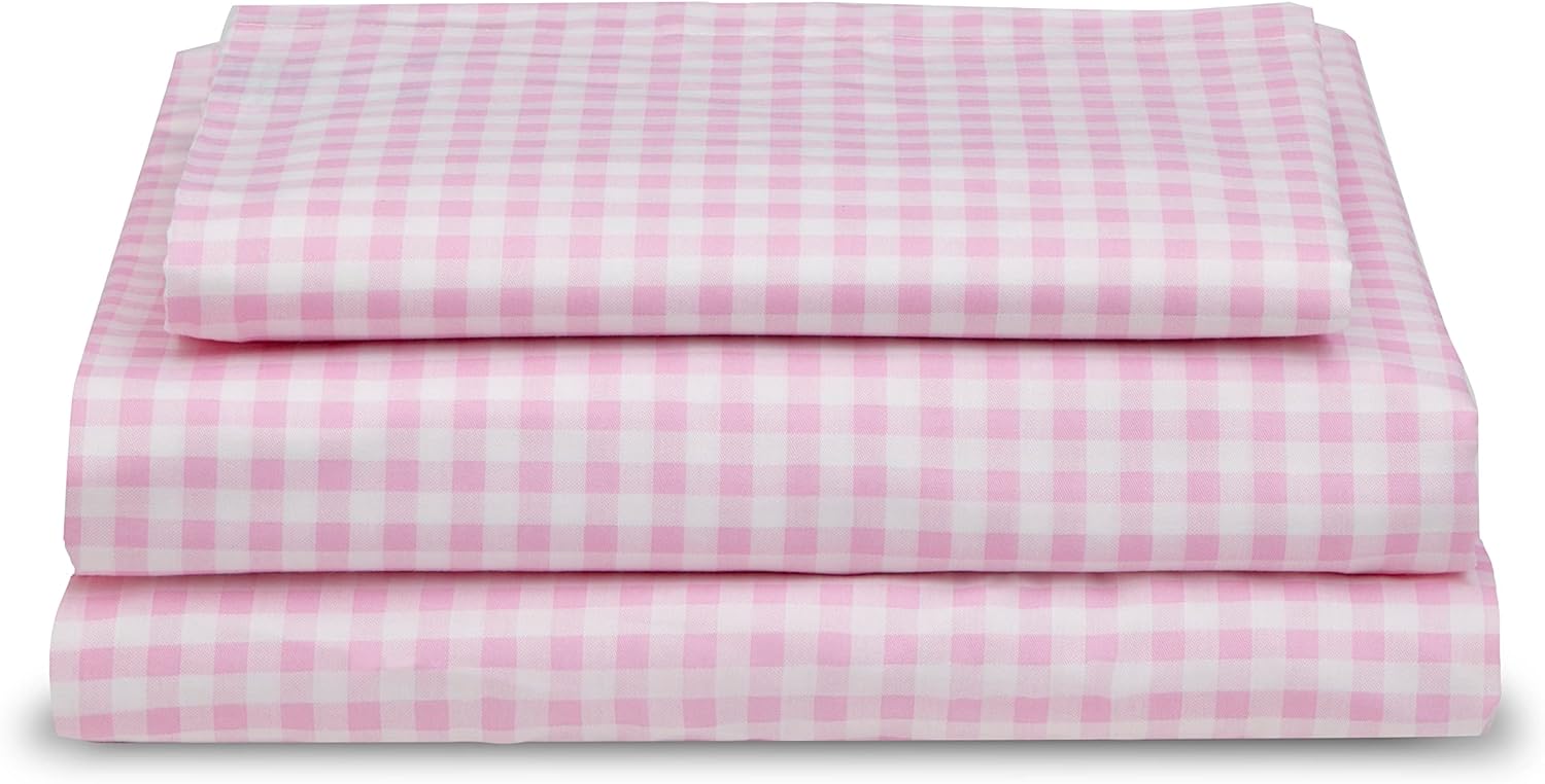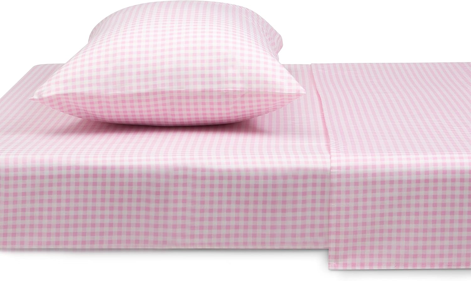 Elevate your childâs sleep experience with this elegant and functional 3-piece twin sheet set from Delta Children. Designed with a charming pink gingham pattern, it brings a touch of warmth and style to any bedroom or playroom, making it an ideal choice for nurseries, kidsâ rooms, and even sleepovers. Whether it's a peaceful nighttime or an exciting sleepover, this Delta Children twin sheet set delivers comfort and style every time. The budget-friendly yet high-quality construction ensures that your child will enjoy a restful sleep without compromising on aesthetics. The pink gingham design is both playful and sophisticated, perfectly suited for families who want soft, breathable bedding that adds a pop of color to their little oneâs space. A 3-piece set that includes all the essentials for your childâs bedding needs. Make your childâs room cozy and inviting with this all-season solution.Delta Children Twin Sheet Set with Pink Gingham Design