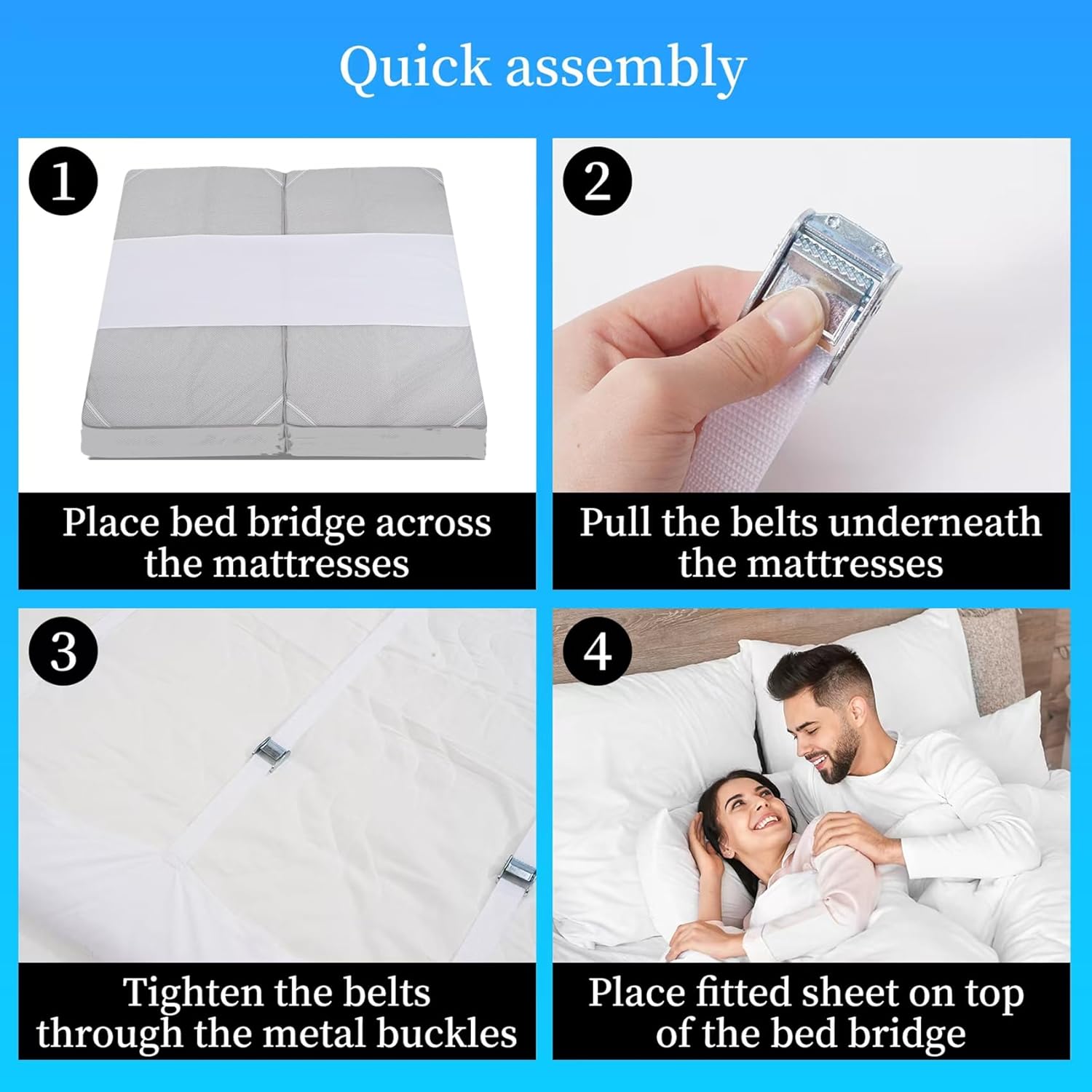Tired of uncomfortable gaps between your split king mattresses? Meet the EASYMALL Bed Bridge, designed to create a smooth, uninterrupted sleep surface. This reliable solution combines durability with ease of use, ensuring a perfect fit for any mattress setup.