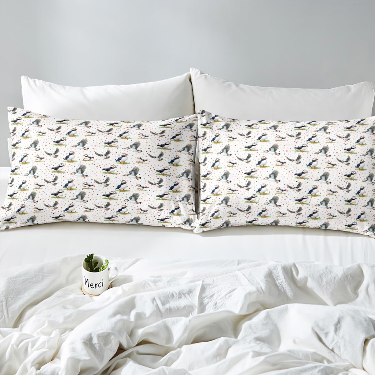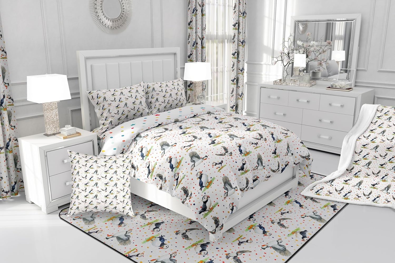 This kawaii-style Cartoon Puffin Duvet Set brings a touch of whimsy and charm to any bedroom. Featuring vivid 3D printed designs of cute Atlantic Puffins, it transforms your child's space into a fun and inviting retreat. The soft and durable microfiber material ensures comfort throughout the year, while its easy-care properties make it perfect for a stress-free bedtime routine.
