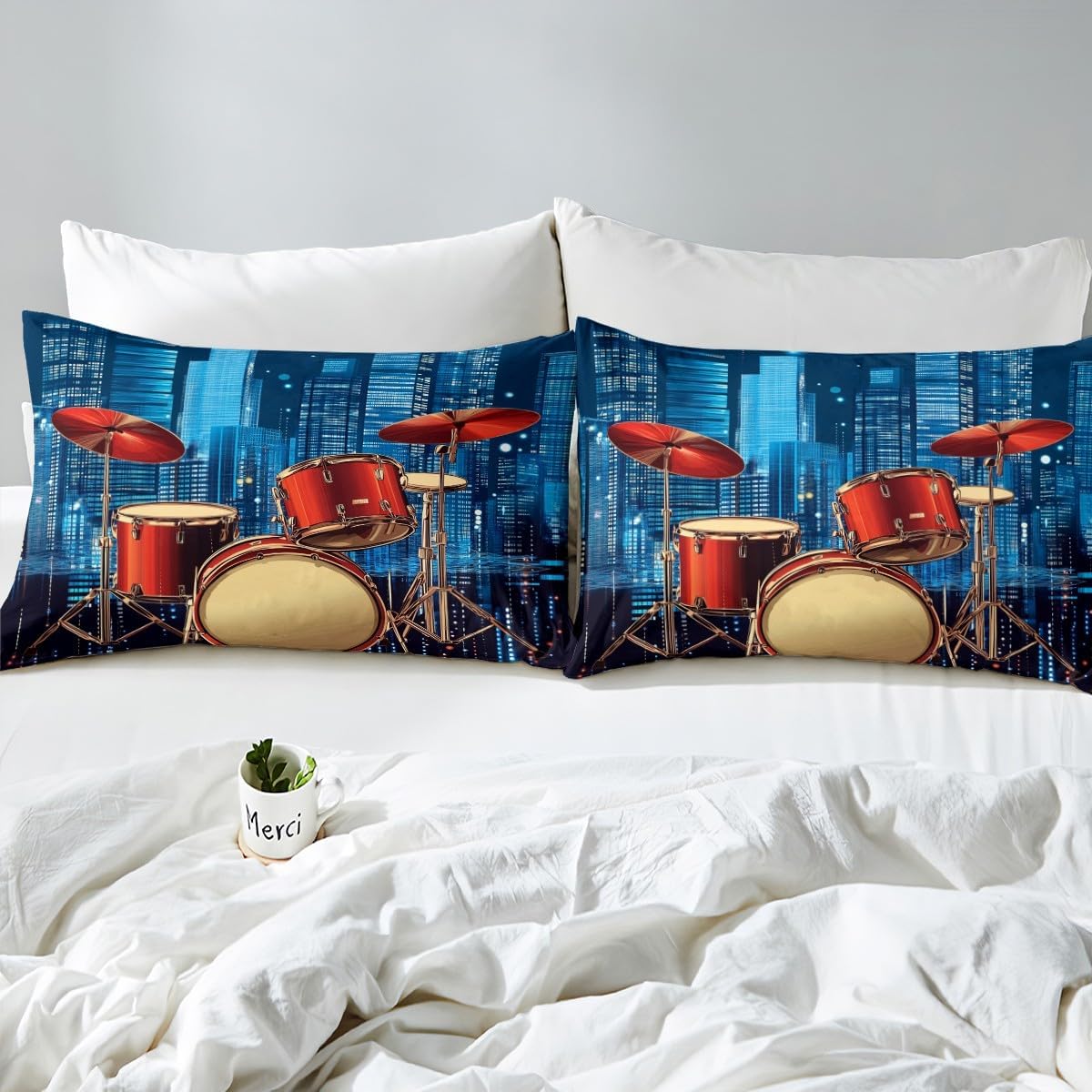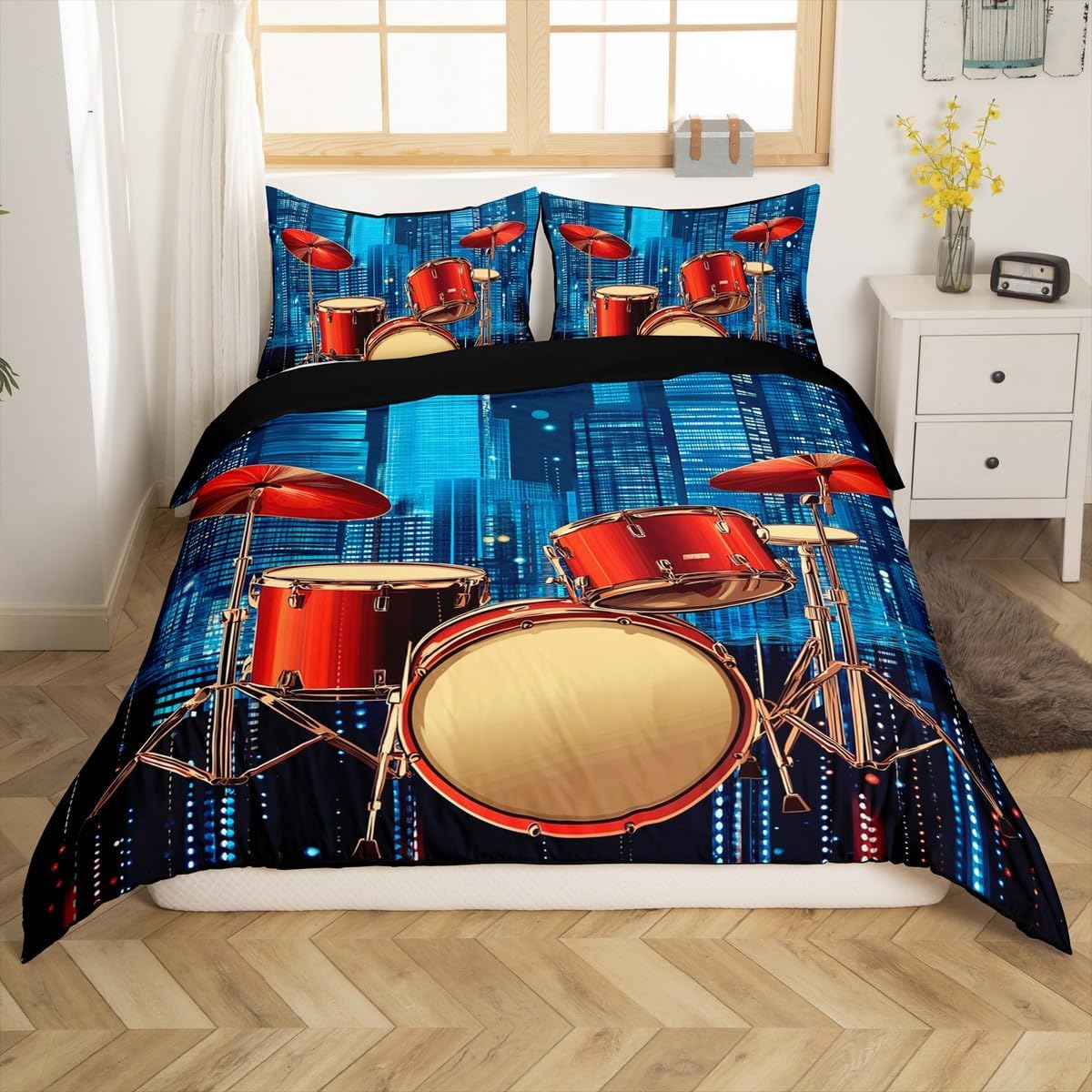 Add a burst of energy and personality to your bedroom with this vibrant Drum Kit Duvet Cover Set. Featuring a bold 3D printed design that pays tribute to rock music and hip hop culture, it's a must-have for anyone who loves to express their style through music. Made from premium 100% polyester microfiber, it provides a soft, cloud-like texture that's gentle on the skin and perfect for year-round use. The set comes with a hidden zipper closure and corner ties, making it easy to install without any tools. Whether you're a music lover or a parent looking to spice up your child's room, this bedding set offers a fresh and modern look that's sure to impress.