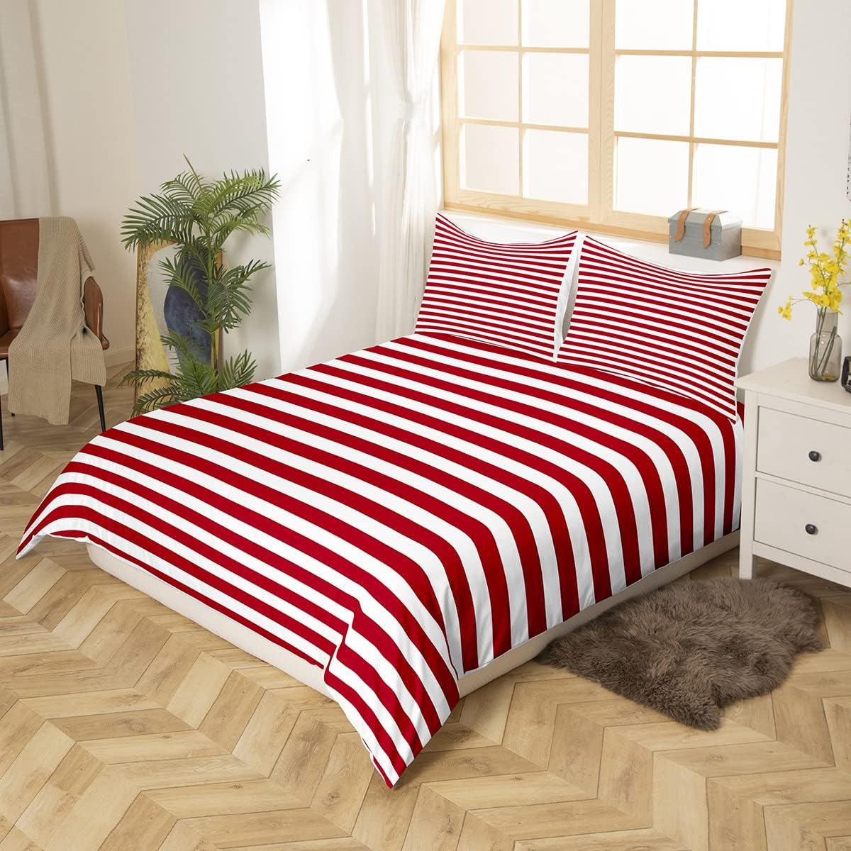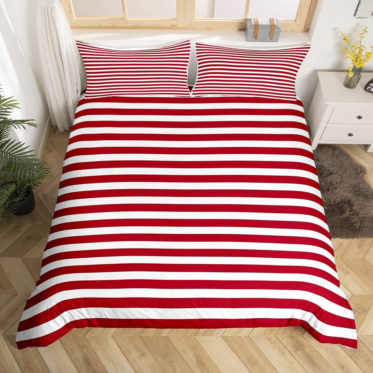 Elevate your bedroom with a modern and artistic touch using our 3D printed duvet cover set. Featuring bold red and white ticking stripes, this set adds a fresh, eye-catching design that blends modern abstract aesthetics with youthful charm. Whether for a child's room or a stylish adult bedroom, it's the perfect addition to any decor scheme. Crafted from ultra-soft 100% polyester microfiber, the duvet cover offers a cloud-like feel that's both comfortable and breathable. Ideal for all seasons, this fabric ensures long-lasting softness and easy care with machine washable and tumble dry low features. The hidden zipper closure and corner ties make it easy to put on and take off, saving you time and effort. With no-fade reactive dyeing, the set maintains its vibrant colors through frequent washing, ensuring it remains a striking part of your bedroom decor for years to come. This stylish set includes a 104\" x 90\" duvet cover and two 20\" x 36\" pillow shams, offering a cohesive look that enhances your bedroom with both function and fashion. It's an excellent choice for families looking to create a fun yet sophisticated space.Erosebridal's Girl Stripe Duvet Cover Set