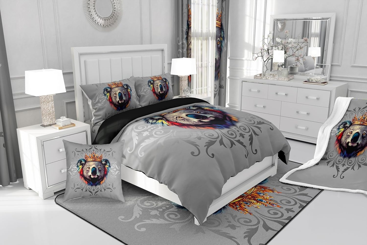 Infused with a vivid 3D printed koala design, this set adds a touch of charm and delight to any bedroom, guest room, or even living space. The durable and stylish print wonât fade, so it stays fresh and cheerful for longer. With a hidden zipper closure and corner ties, installation and maintenance are effortless, making it perfect for busy parents.