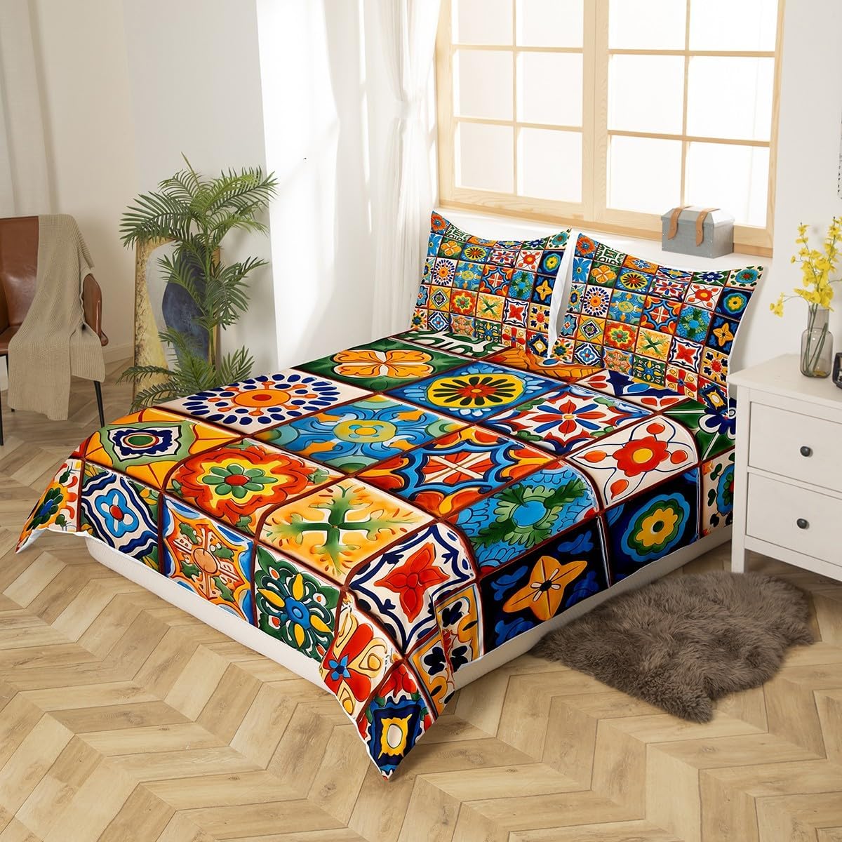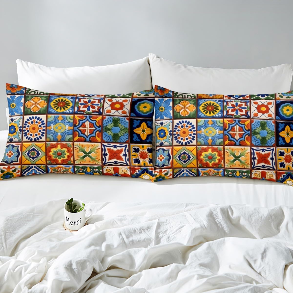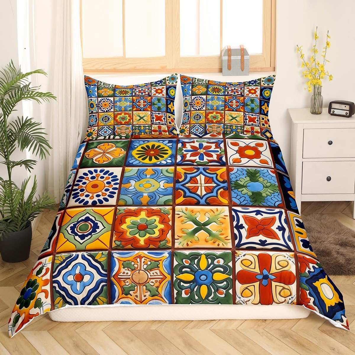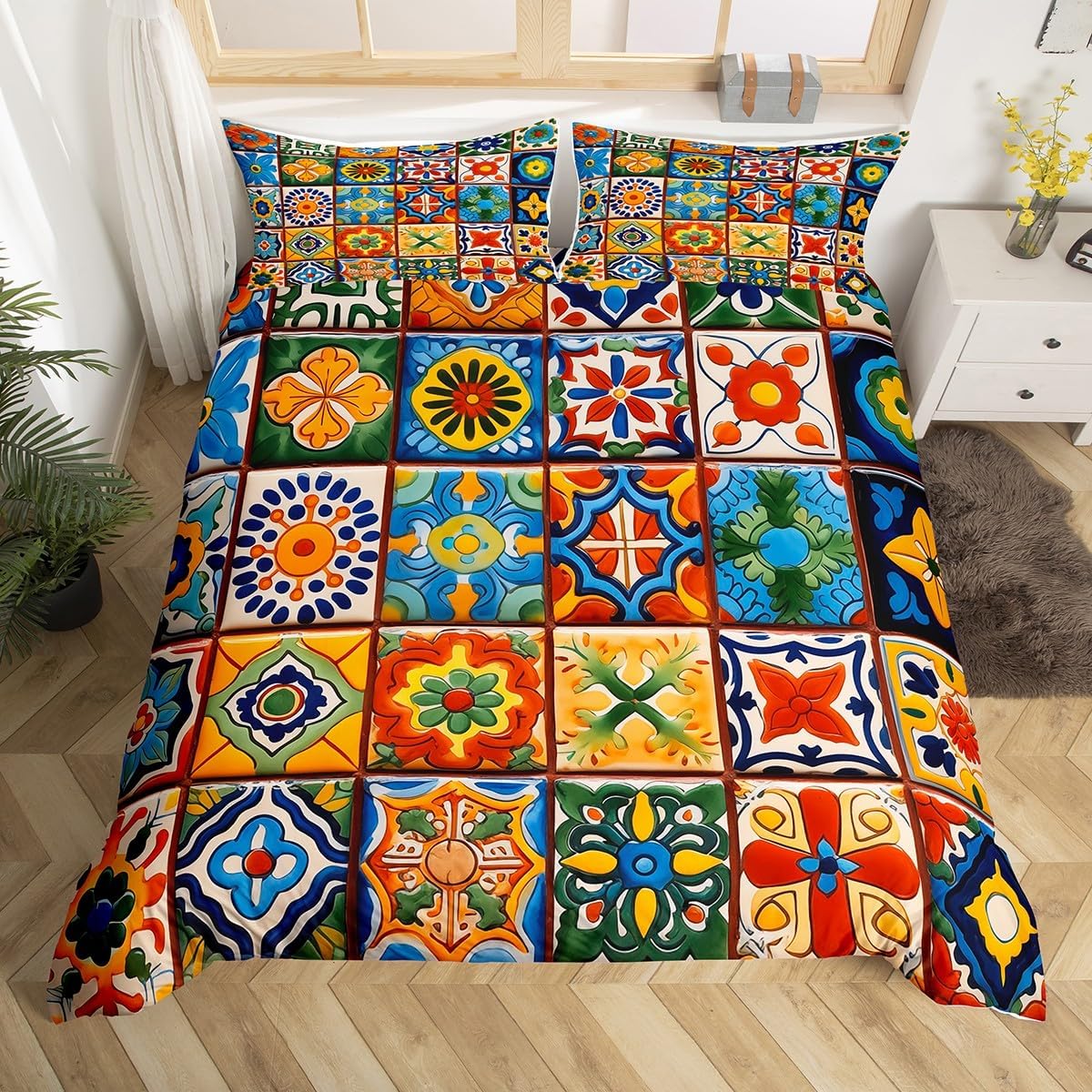 Transform your bedroom with this stunning 3-piece Talavera Tile Duvet Cover Set. Inspired by traditional Mexican craftsmanship, it brings a warm, vibrant energy to your space. Made from high-quality polyester microfiber fabric, the set is ultra-soft, comfortable, and suitable for all seasons. The vibrant 3D printed design features classic Talavera tile motifs in a bold and bohemian style, adding a unique aesthetic to your room decor.