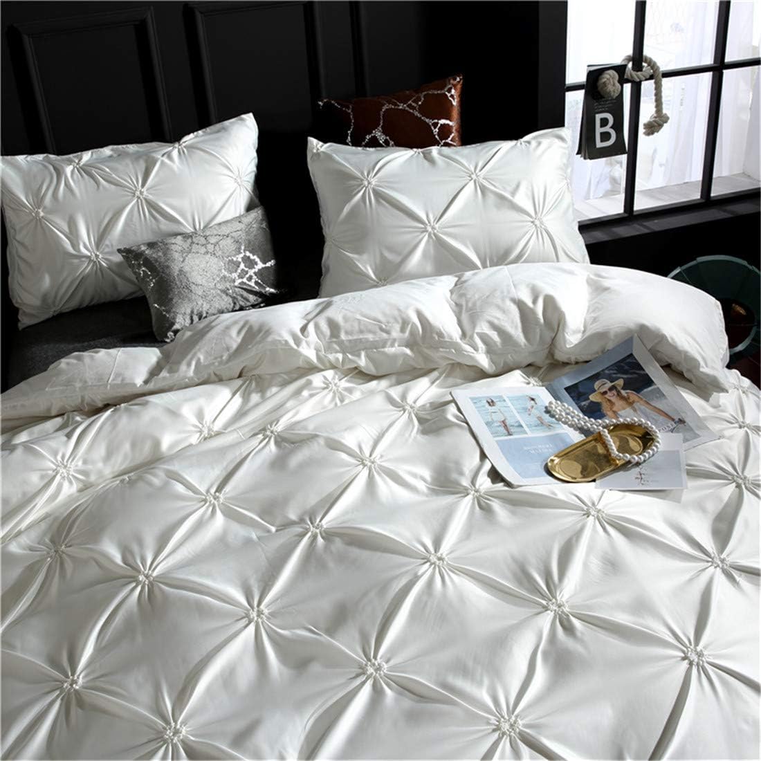 Erosebridal twin size duvet cover set brings a touch of luxury and comfort to your bedroom with its silky-like satin finish. The subtle zipper ruffle design and hidden zipper closure make it a practical yet decorative addition that blends style with function. The intricately pleated texture adds a soft, elegant dimension to your bed, while the 3D printed patterns offer a modern, eye-catching aesthetic that remains vibrant for years. Made from high-quality polyester microfiber, this set is ultra-soft, breathable, and gentle on sensitive skin. Perfect for creating a cozy, stylish space in your bedroom, guest room, or living area, it ensures a fresh, elegant look that updates effortlessly with every season.