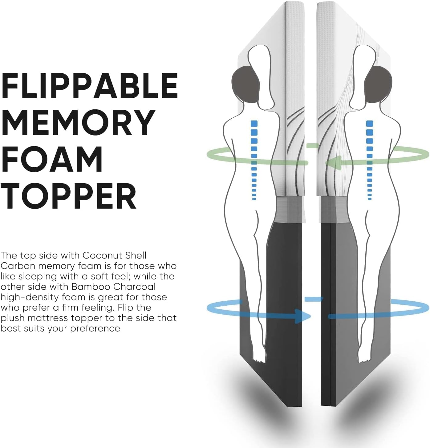 Designed for ultimate comfort and rest, the FLEXPEDIC 3 Inch Mattress Topper is a must-have for anyone looking to elevate their sleep experience. Its unique combination of Coconut Shell Carbon and a 3D breathable mesh cover makes it not only eco-friendly but also highly effective at eliminating odors and keeping you cool throughout the night. If you suffer from back pain or simply need a more restorative mattress setup, this topper delivers the support and cushioning you need for a better nightâs sleep. The Zero Gravity support system mimics float therapy, reducing pressure on your joints and muscles for a more relaxed, pressure-free sleep. Whether you prefer firm or soft, the double-sided design lets you customize your comfort to match your needs. Plus, the non-slip base and premium metal zipper ensure a secure fit and make cleaning and maintenance easy. Upgrade your mattress to a personal oasis of relaxation with the FLEXPEDIC mattress topper.