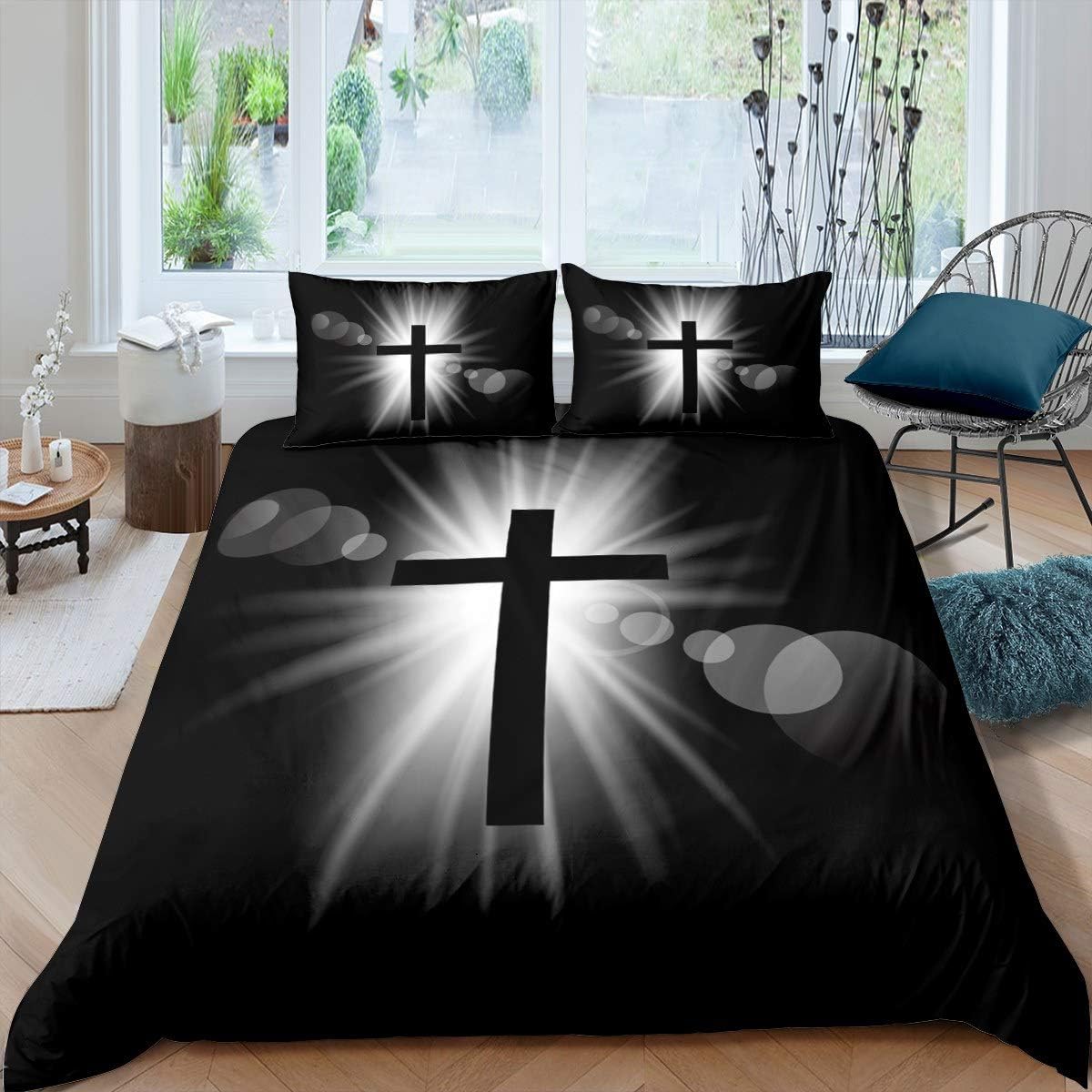 The cross motif adds a meaningful and decorative element, making this set more than just functionalâit's a statement of personal taste and faith. With a combination of softness, style, and practicality, this bedding set is designed to provide lasting value for your home decor needs.