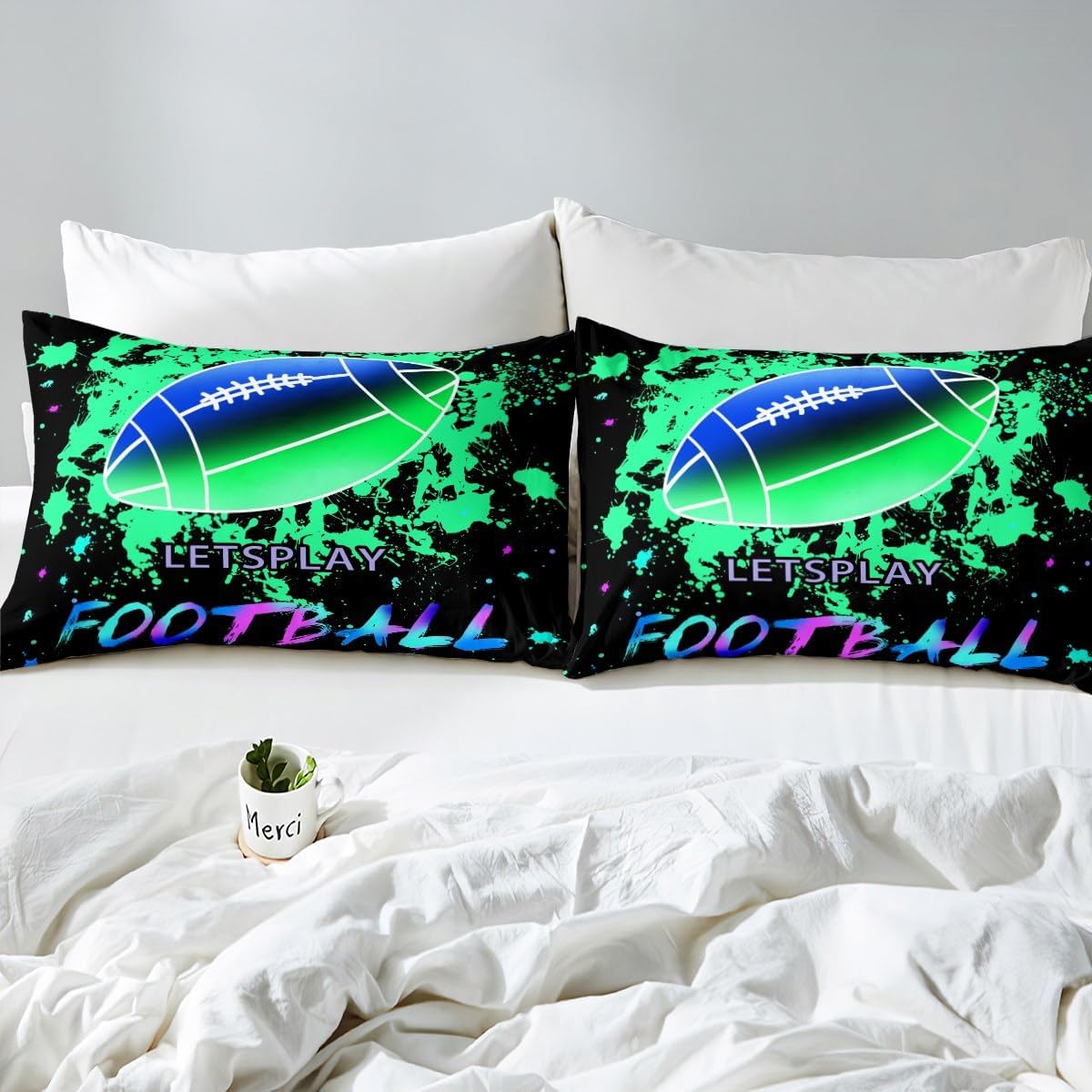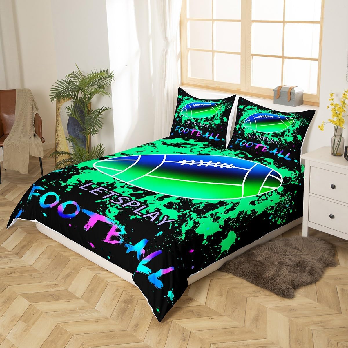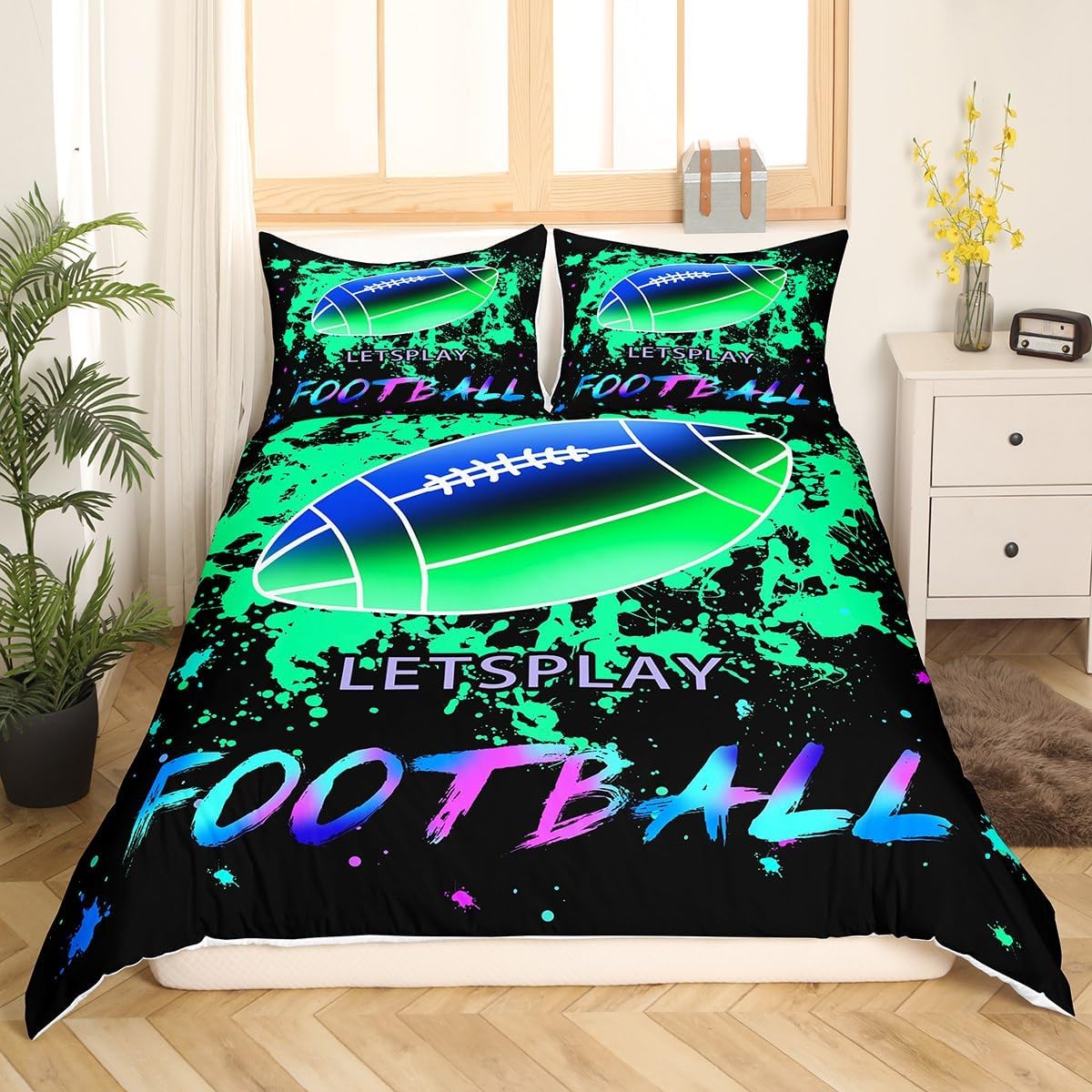 This duvet cover set isnât just bedding â itâs a statement of style, comfort, and casual fun. The stylish football designs are ideal for those who love to showcase their passion for sports in their home. It adds a touch of excitement to your room while offering a soft, breathable surface thatâs gentle on skin and perfect for a good night's sleep. With its modern aesthetic and versatile use, it's suitable for bedrooms of all ages and tastes.