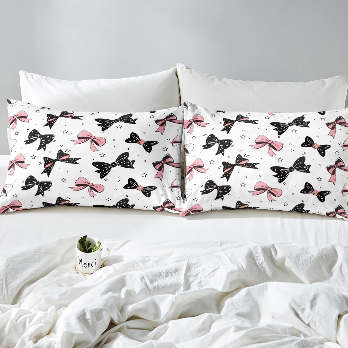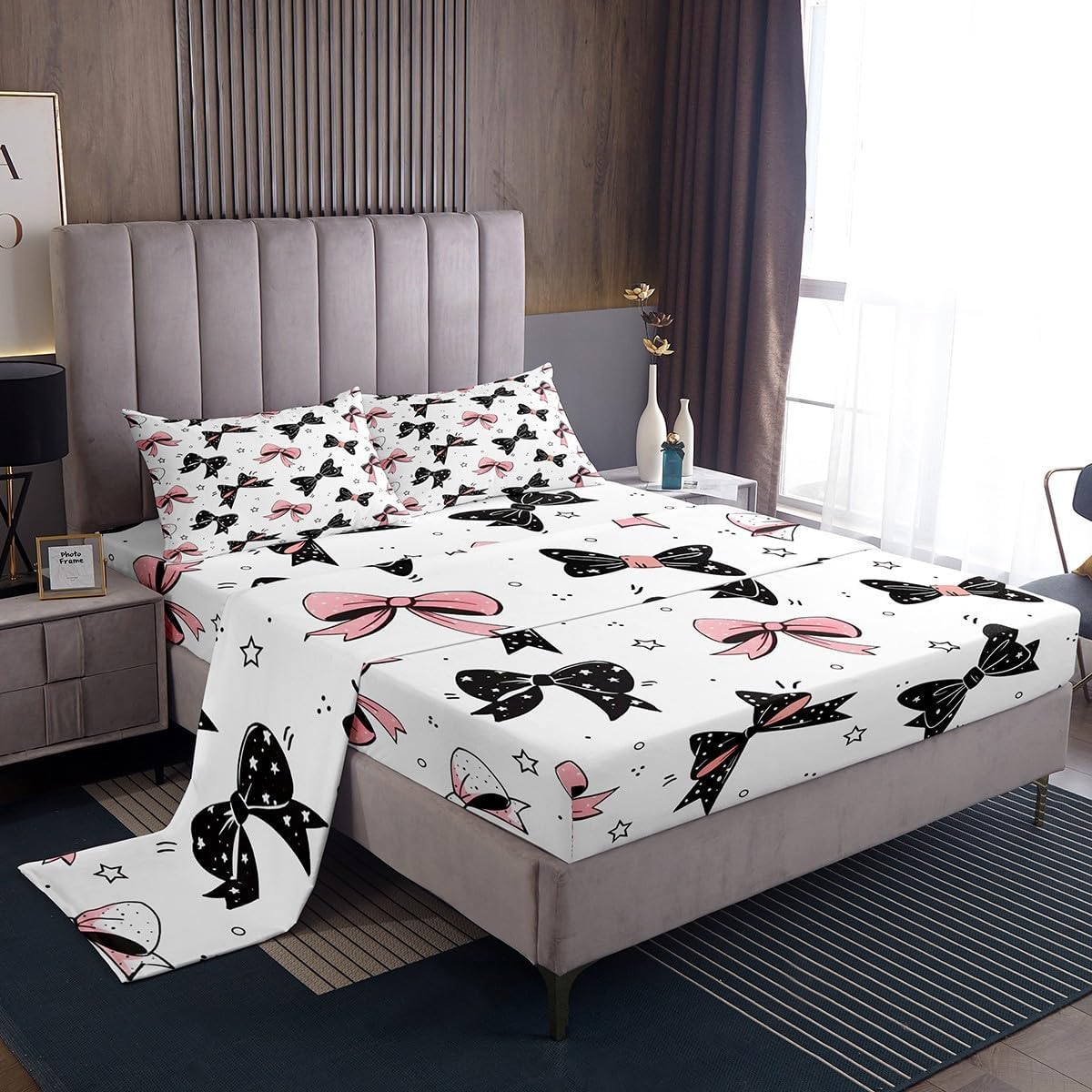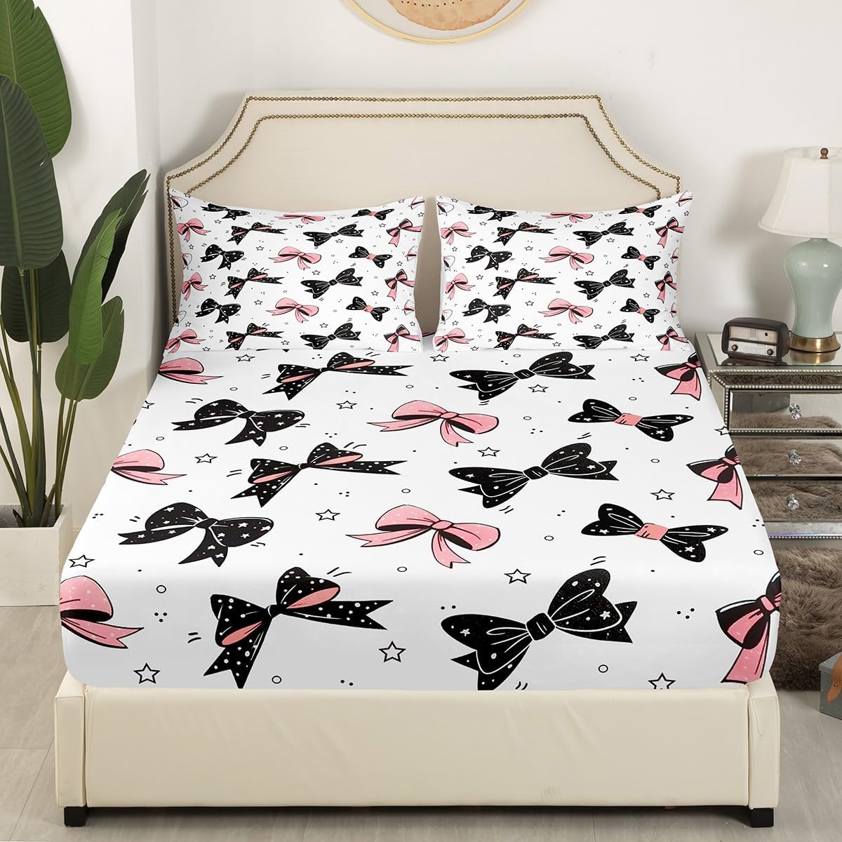 Bring a touch of magic and whimsy to your childâs room with the Feelyou Bowknot Bed Sheet Set. This adorable set features a charming 3D bowknot design, rendered in a delightful watercolor pink and black pattern, creating a fairy-tale atmosphere that's perfect for a cozy bedtime experience. The soft, breathable fabric ensures your little one stays comfortable and refreshed throughout the night, while the deep pockets are designed to fit mattresses up to 16 inches, offering a secure and snug fit. This twin size set includes a fitted sheet, flat sheet, and pillowcase, all crafted with playful kawaii appeal to make your sleep space feel like a dream come true.