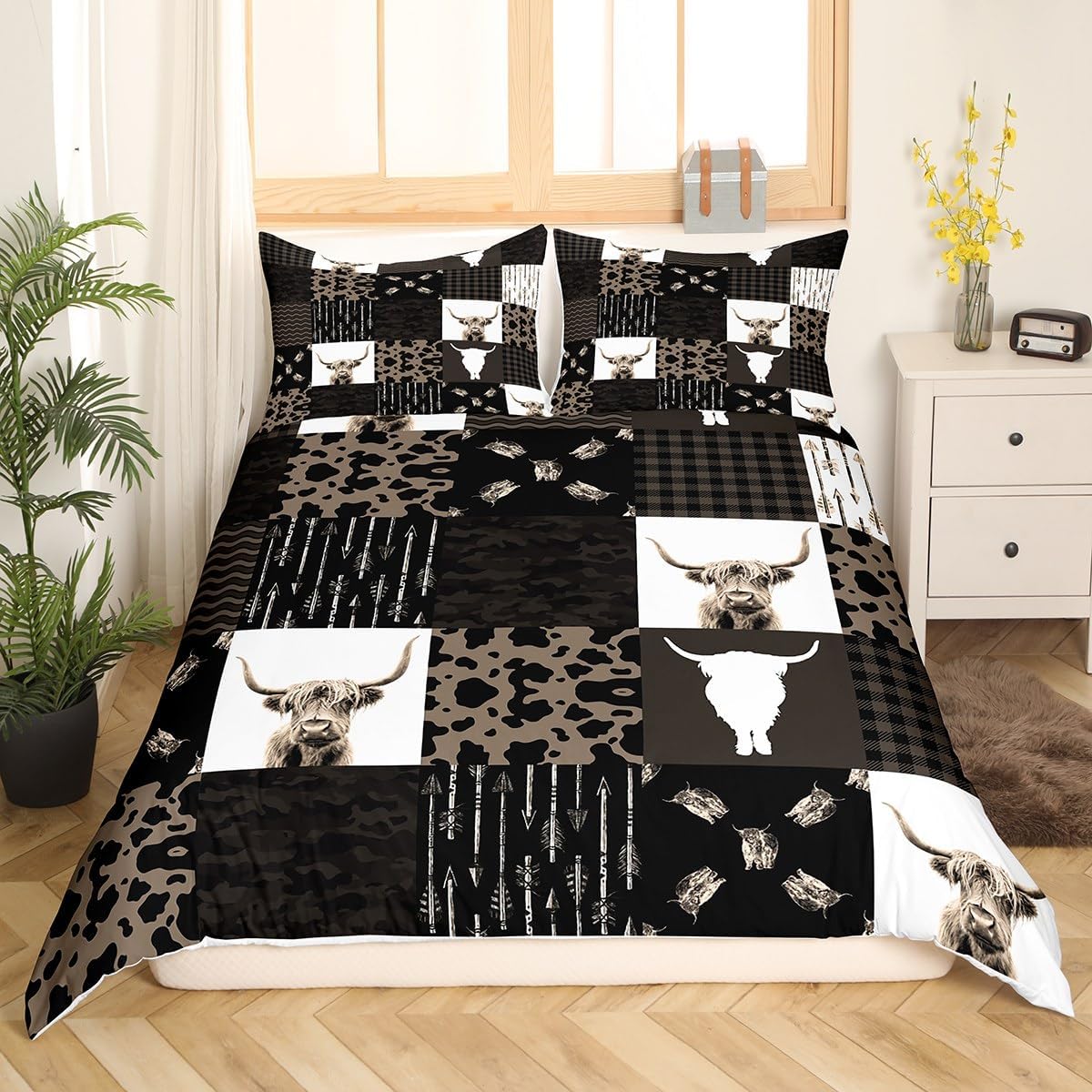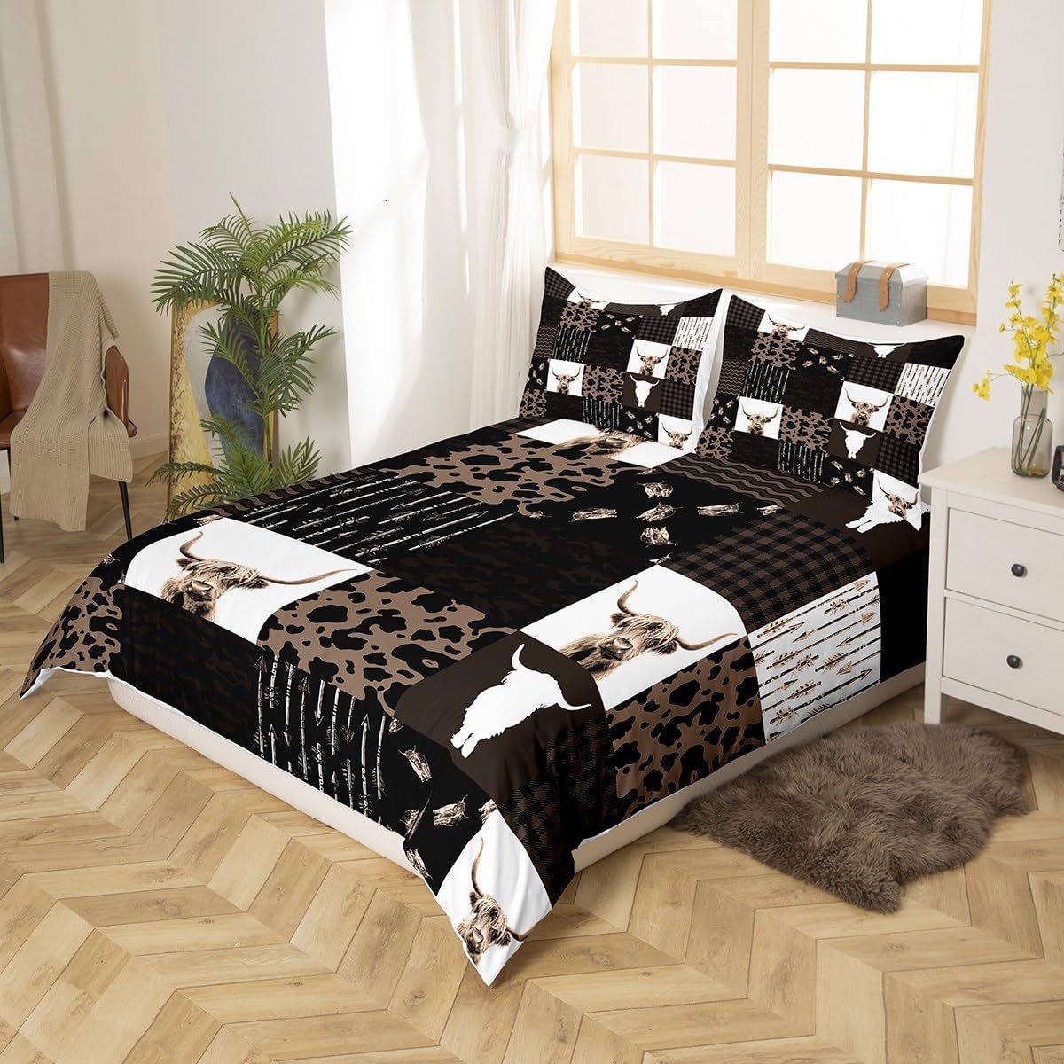 This set is designed for those who want to infuse their bedroom with a cozy, natural aesthetic. The brown cow print is not only visually appealing but also adds a whimsical character that makes your space feel more like home. The soft, breathable fabric ensures all-night comfort, while its durability means it will last for years of gentle use. It's an excellent choice for creating a rustic vibe in your living area or adding a touch of vintage style to your home decor.