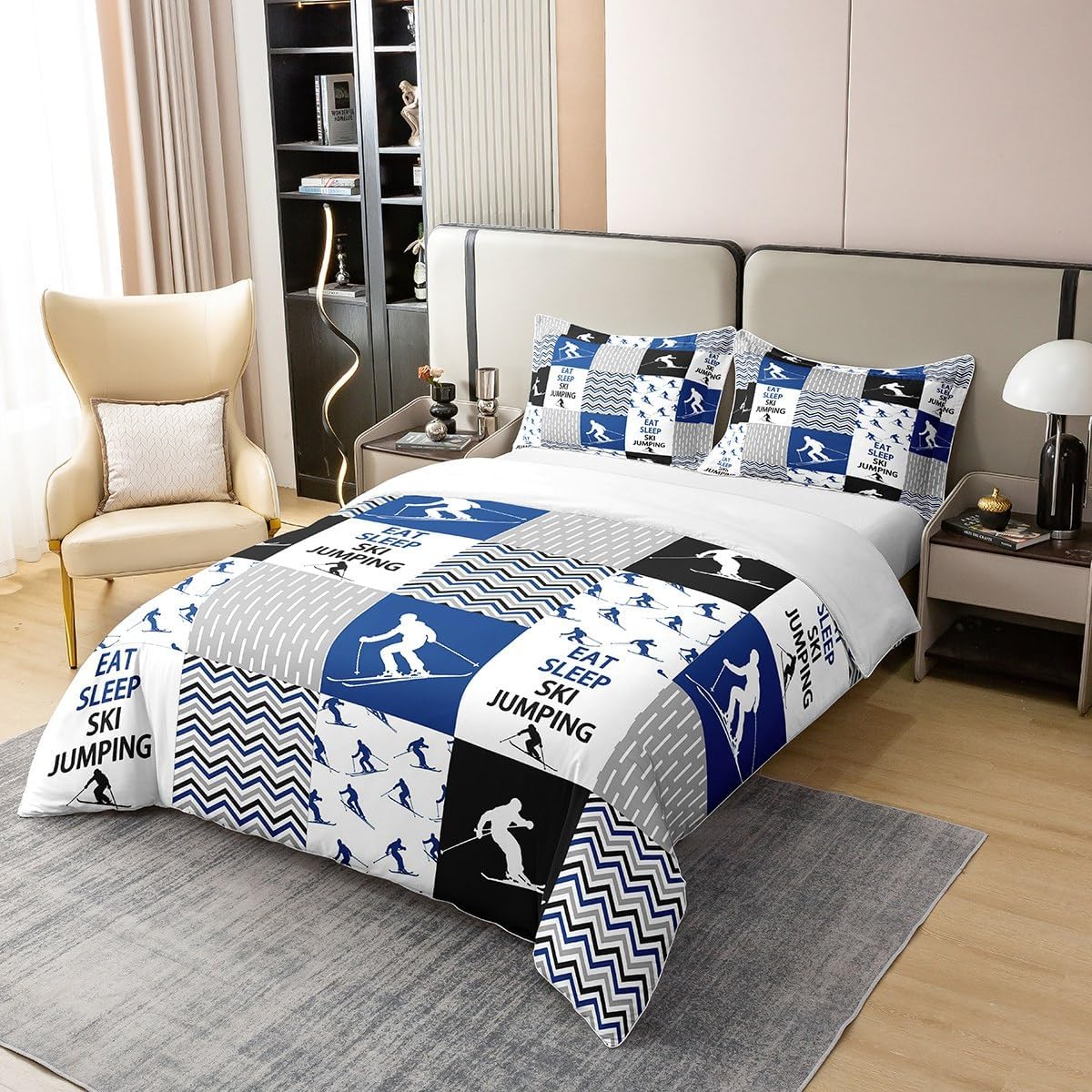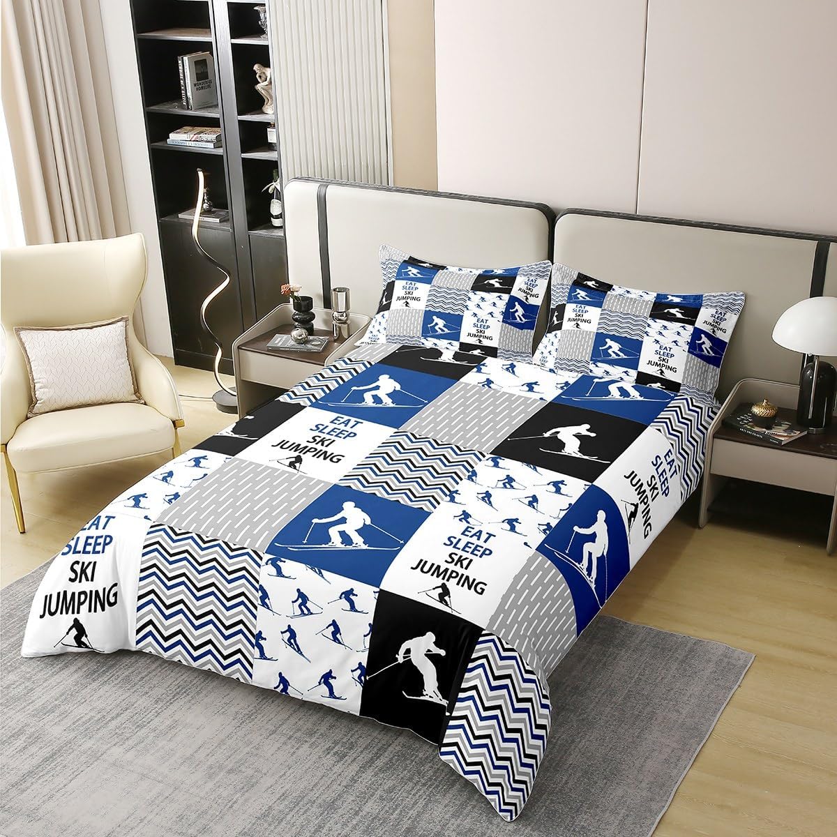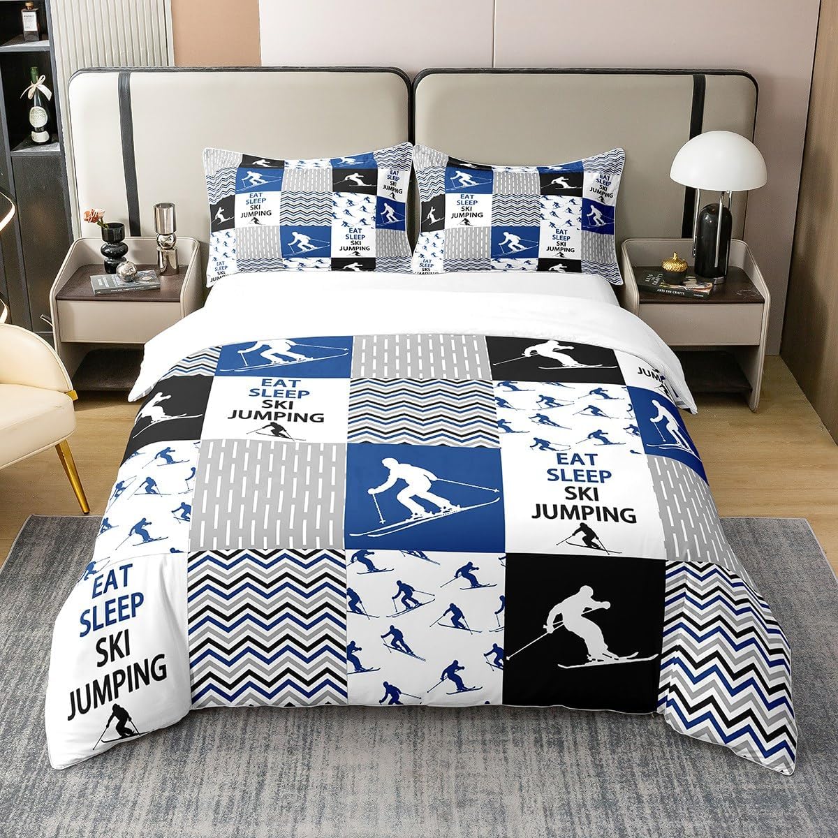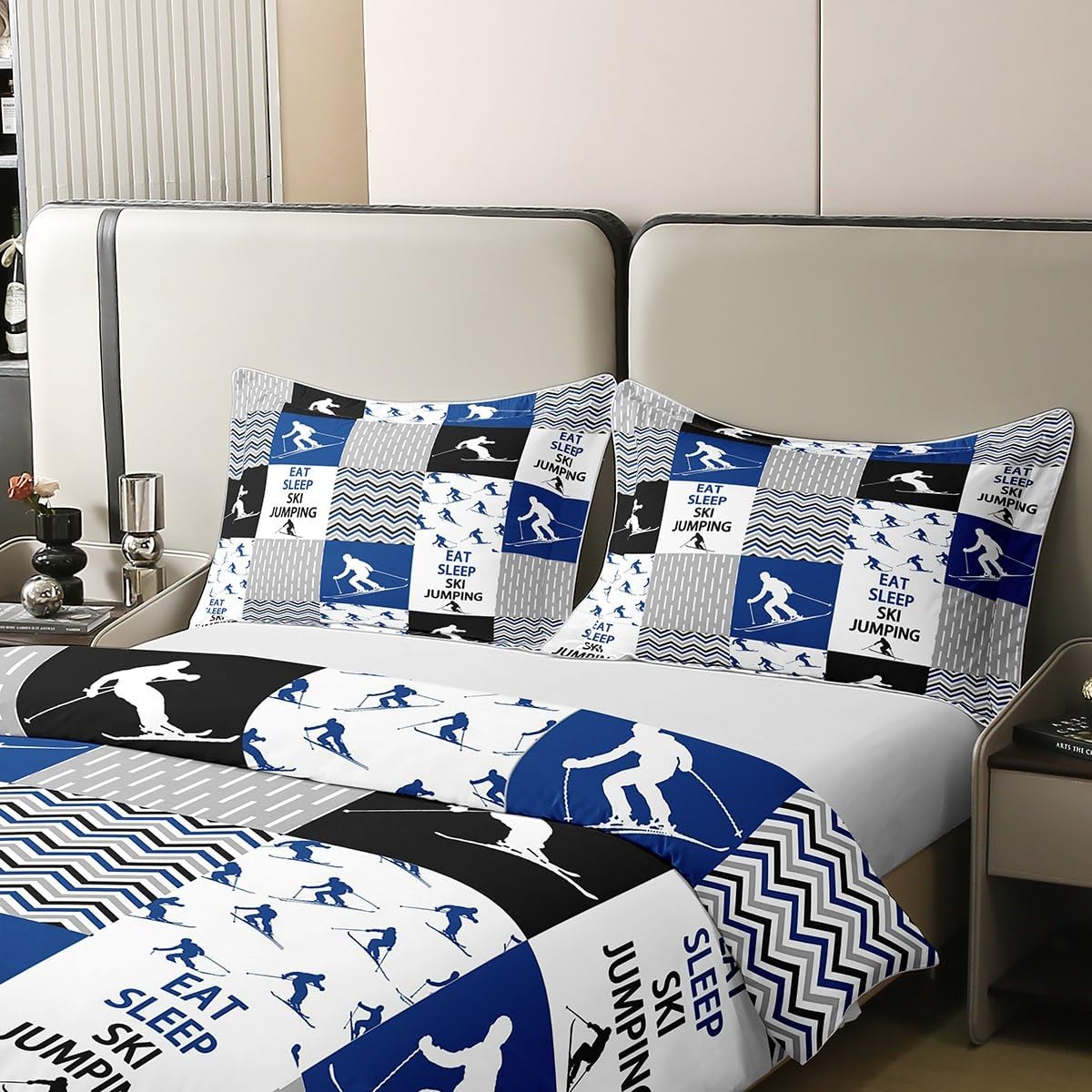 Add a dash of sporty flair and comfort to your bedroom with this stylish Feelyou cotton duvet cover. Made from premium 100% cotton, it delivers a soft, breathable feel that keeps you cool in summer and warm in winter. The vibrant ski jumping motif is not only eye-catching but also a perfect way to bring adventure into your space. Whether you're a fan of winter sports or just love a bold, fun statement in your room, this duvet cover is a great choice.
