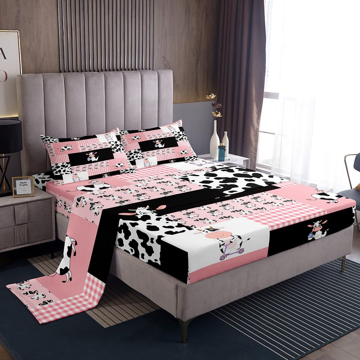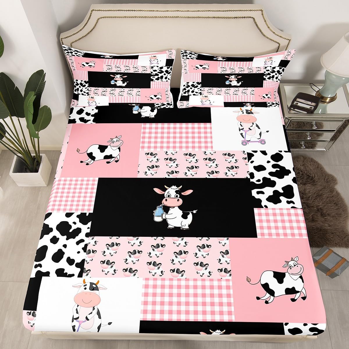 Add a touch of charm and comfort to your child's room with this delightful milk cow sheet set. Designed with a playful and whimsical carton cow pattern, this set brings a sense of joy and softness to every night.