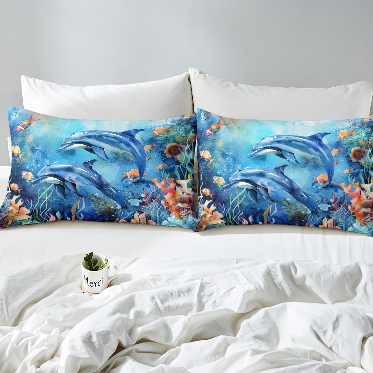 Enjoy a complete bedding solution with the Feelyou Dolphin set. Itâs the ideal way to upgrade your bedroom's style without compromising on comfort or ease of care. With its vibrant design and practical features, it's a great investment for any family.