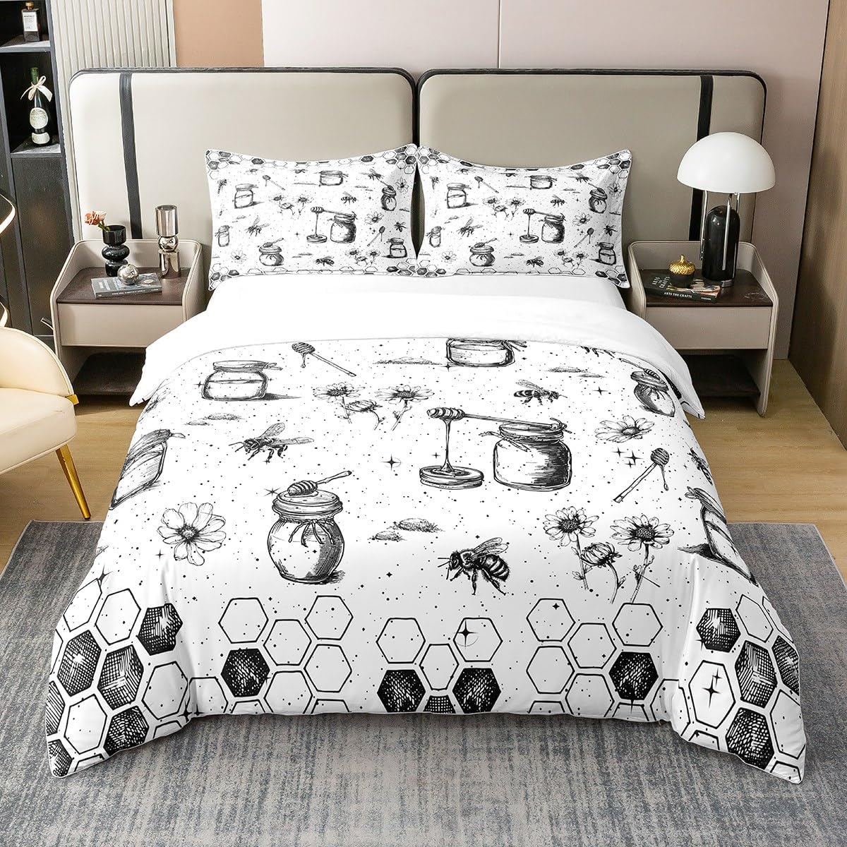 Feelyou's Honeycomb Duvet Cover Set comes in a range of sizes, including twin, full, queen, and king, to accommodate your specific needs. The stylish hexagonal pattern remains a timeless choice for all ages, making it a versatile addition to any bedroom. It's the ideal choice for parents who want to create a cozy, colorful environment for their children to sleep and play in.