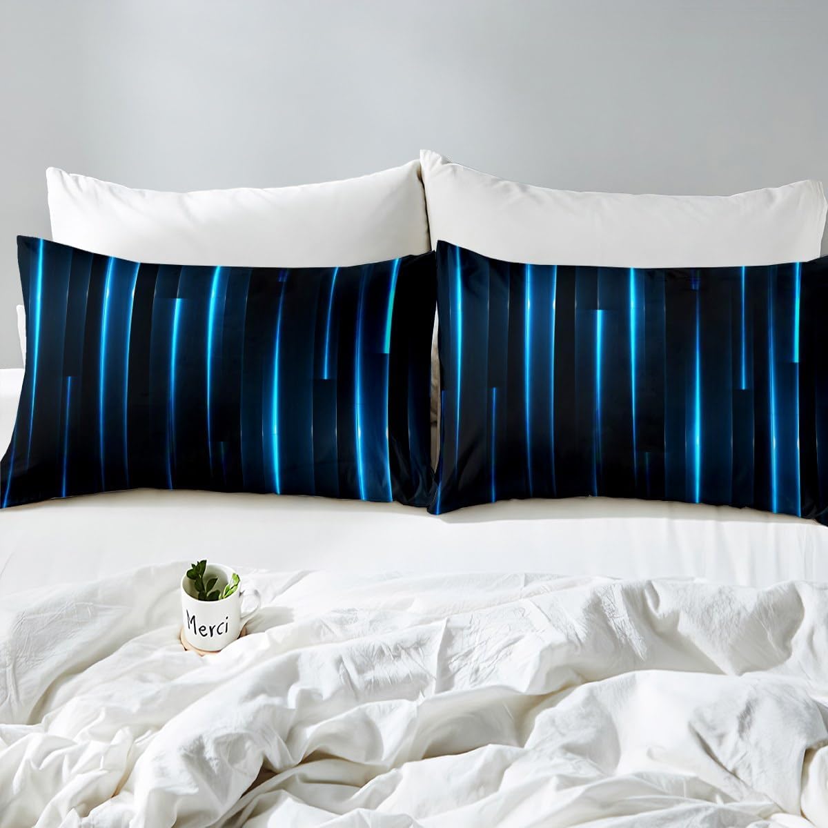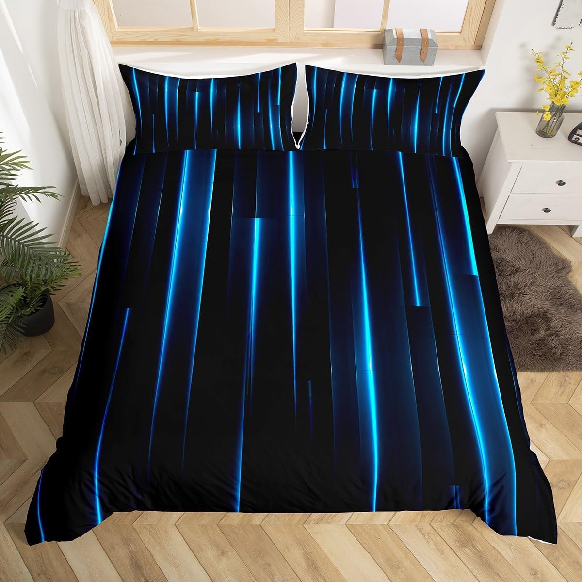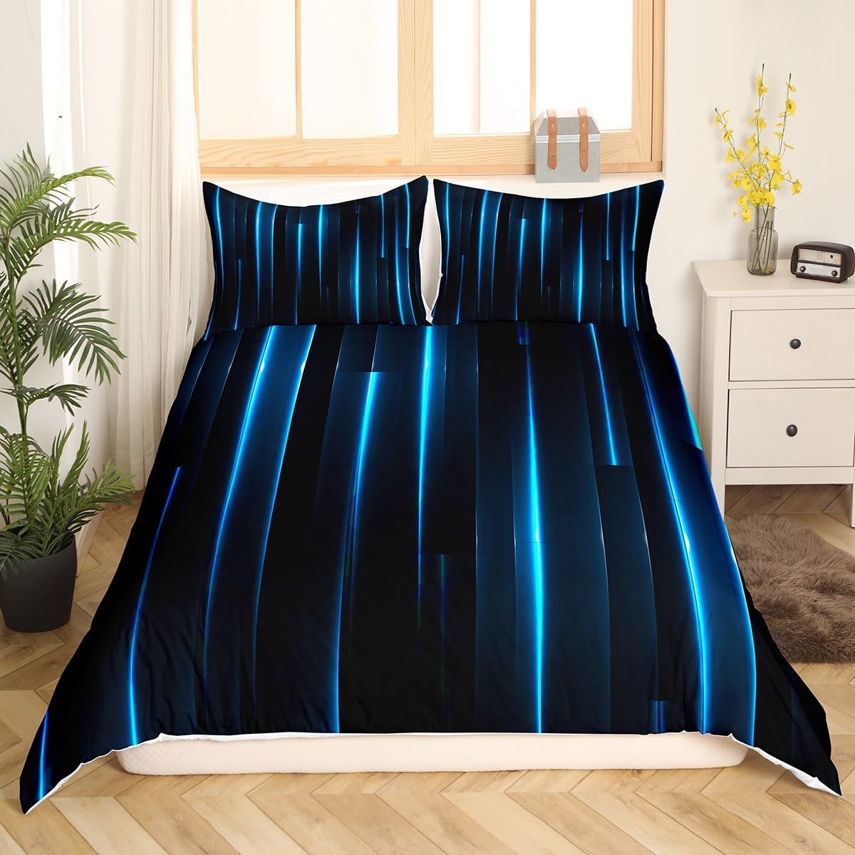 Make your space feel more vibrant and modern with this eye-catching duvet cover set. The striking blue and black striped design is not only visually appealing but also versatile enough to match a wide range of interior styles, from minimalist to bohemian.
