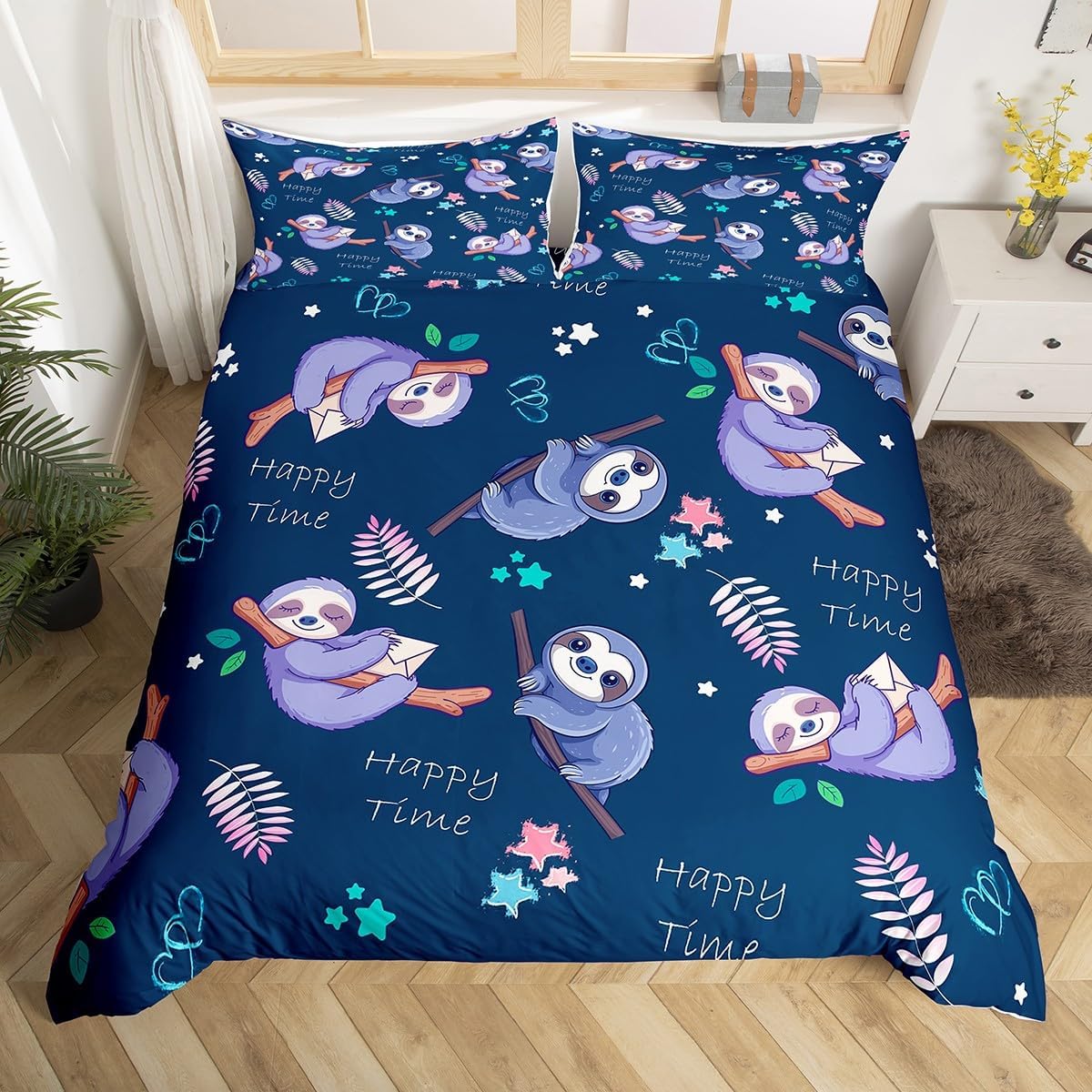 Transform your bedroom into a cozy and playful space with this adorable Feelyou duvet cover set. Perfect for both kids and adults, it features a soft and breathable polyester microfiber fabric that offers a cloud-like feel for a comfortable sleep experience. The charming sloth design, combined with vivid floral and cartoon patterns, brings a touch of whimsy and personality to your bedding while ensuring it's both stylish and functional.
