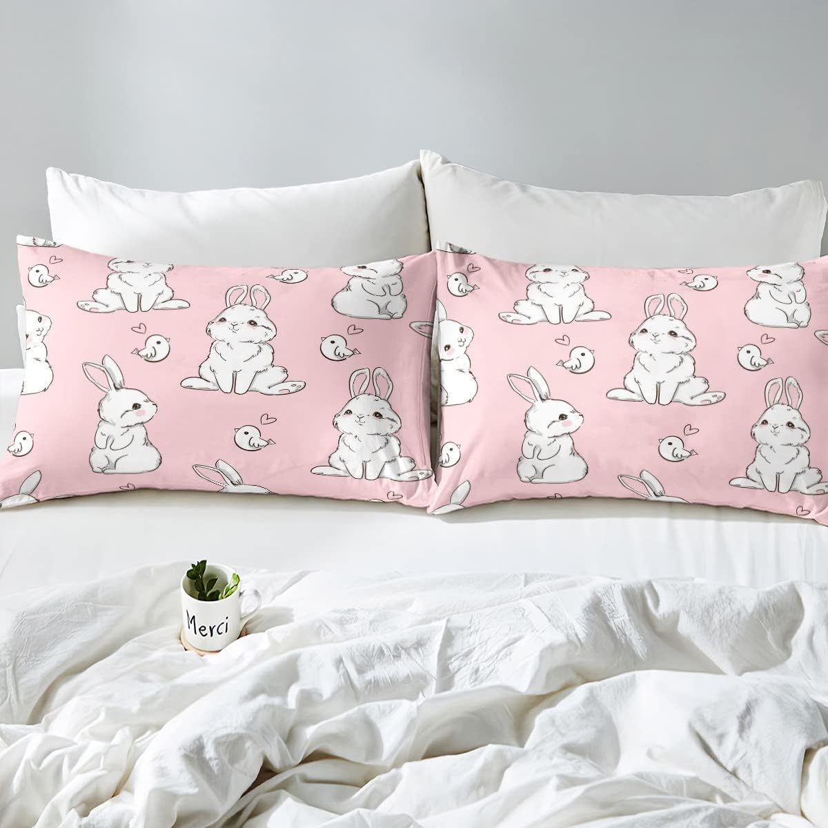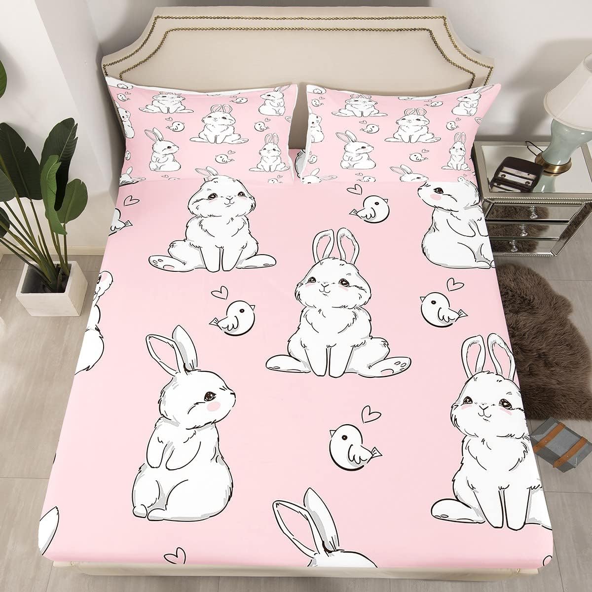 kids bedding set, rabbit pattern sheets, cute rabbit bedding, twin size bedding, 3D printed bed sheets