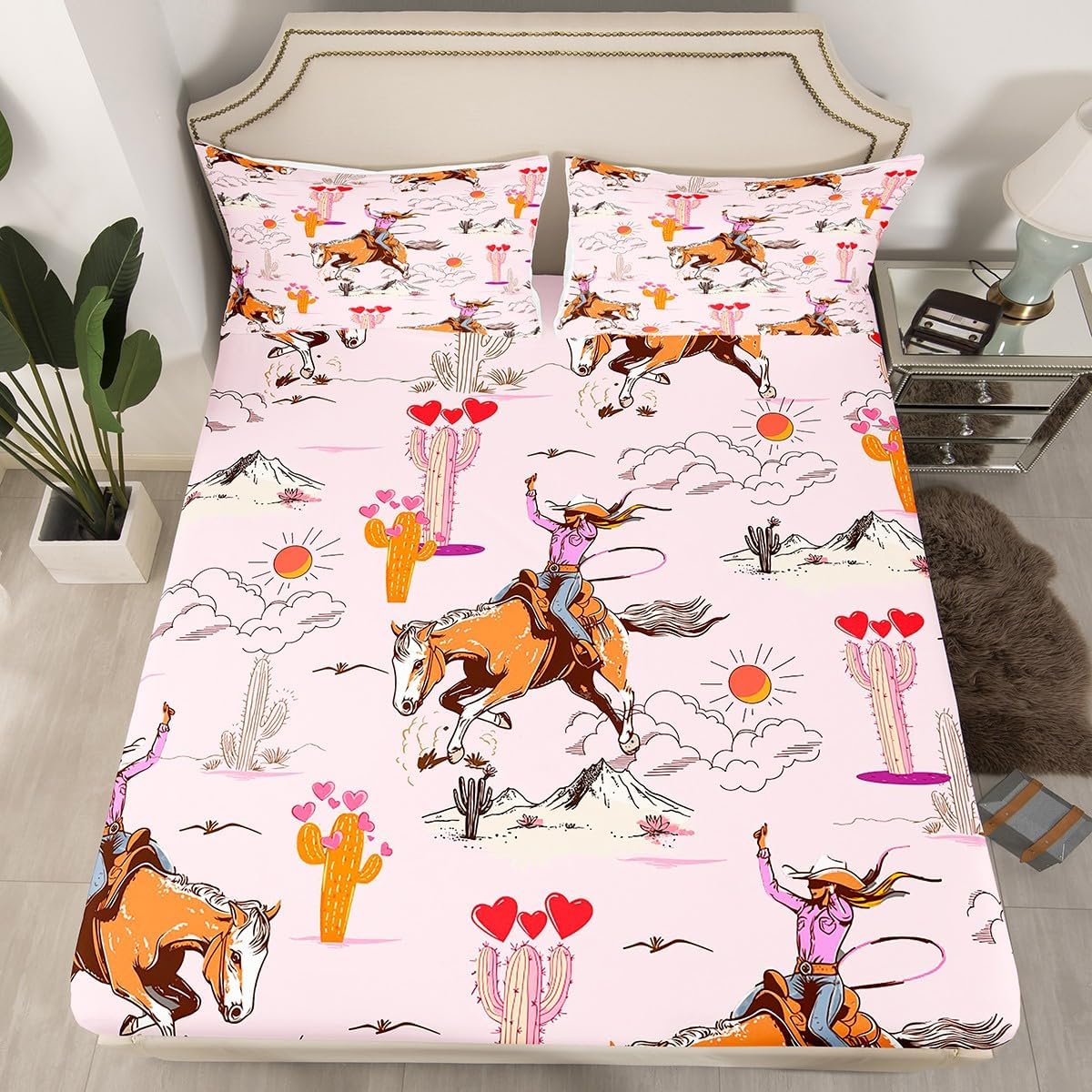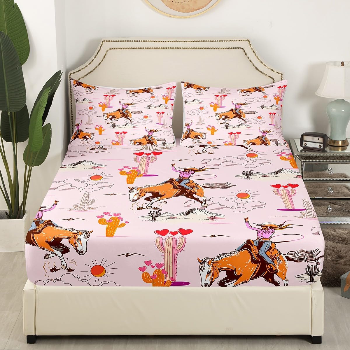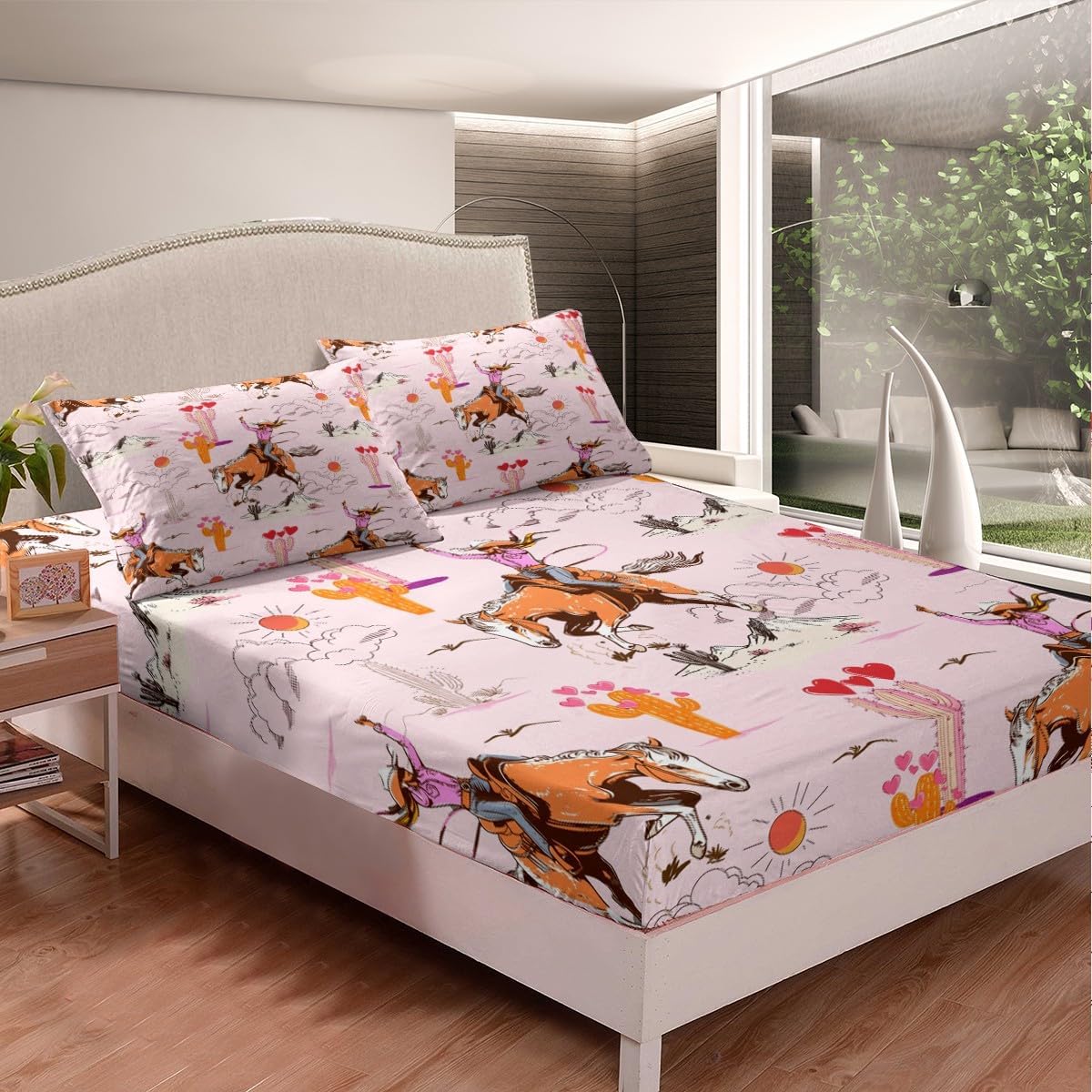 Bring the thrill of the west to your bedroom with the Feelyou Pink Wild West Bed Sheet Set. This set is designed to give your space a bold, thematic style while ensuring comfort and relaxation. The ultra-soft microfiber fabric provides a cozy feel, making it perfect for a restful night's sleep.