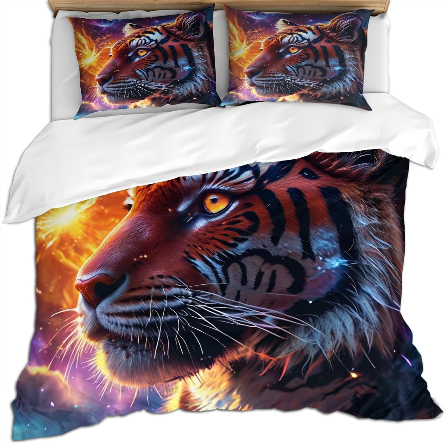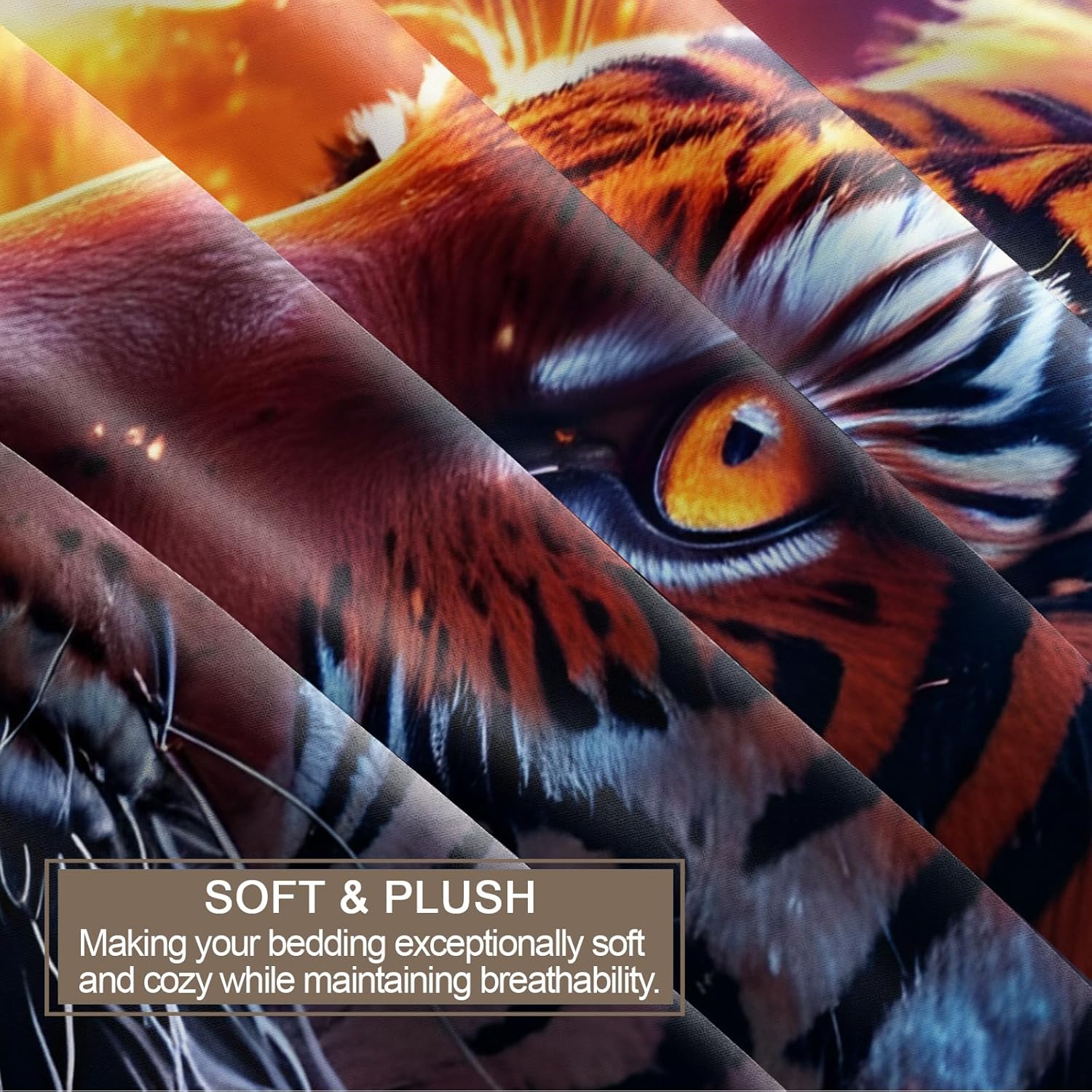 Add a touch of wild elegance to your space with this duvet cover set featuring a bold abstract tiger print. Designed with premium 120 GSM microfiber, it delivers a luxurious feel while remaining incredibly durable for everyday use. The 3D printed design adds depth and an eye-catching focal point to your bedding, and the fade-resistant quality ensures your decor stays vibrant for years.