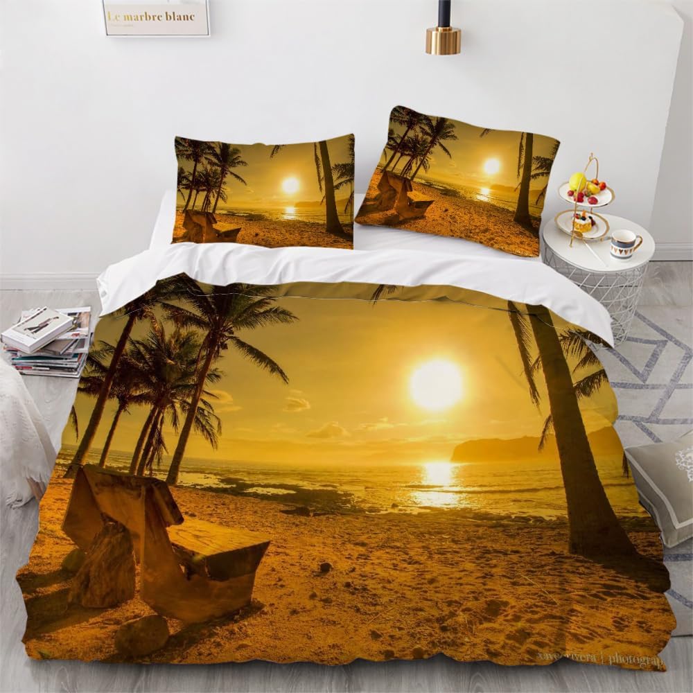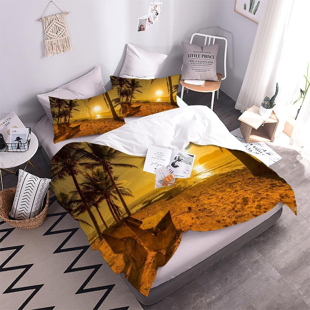 Bring a refreshing and playful vibe to your child's bedroom with this stylish duvet cover set. Inspired by the serene beauty of the beach, it features a vivid 3D printed sunset pattern that stays bright and eye-catching after many washes. The minimalist design effortlessly complements any room décor, making it a great choice for kids or as a thoughtful gift.