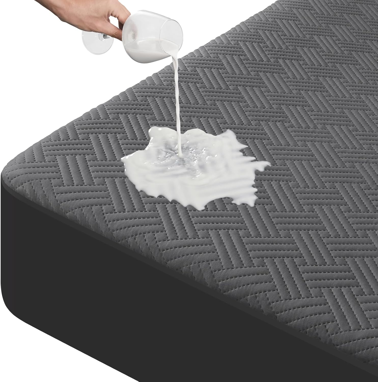 Experience the benefits of a 4-layer cooling airflow system that improves breathability and keeps your sleeping environment cool and fresh throughout the night. The deep pocket skirt design fits snugly around your mattress, securing it even on thick pillow tops, so you get a stable and long-lasting cover. This durable, machine-washable protector can endure over 50 washes without compromising its waterproof or breathable properties, making it perfect for frequent use and easy maintenance.