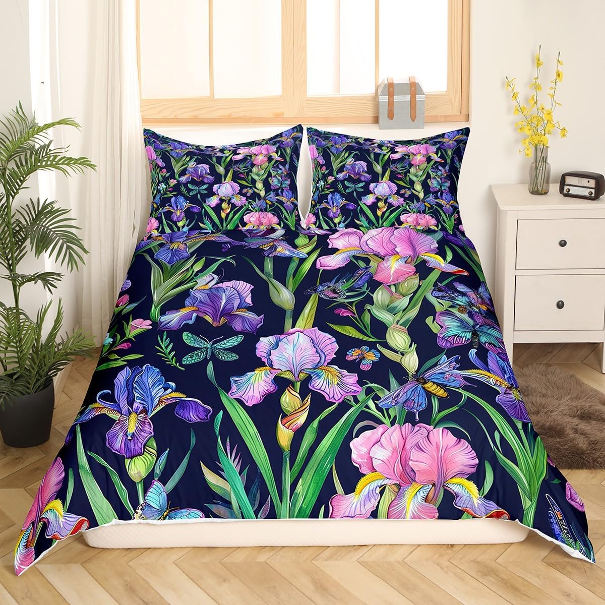 Bring the beauty of the garden into your bedroom with this stunning, vibrant duvet cover set. Designed with 3D printed floral patterns featuring irises and butterflies, it adds elegance and charm to any space. The deep purple color pairs beautifully with the nature-inspired design, making it a perfect choice for adding a touch of serenity and style to your sleep environment.