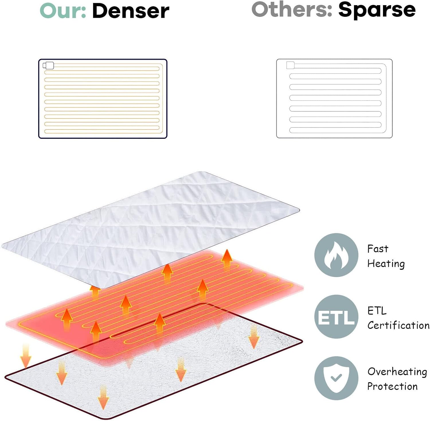 Whether you're staying warm during winter or simply want a more comfortable sleep experience, Giantex Heated Mattress Pad is the perfect solution. Its easy-to-clean design and reliable ETL certification guarantee quality and peace of mind.Get the ultimate in sleep comfort with a product that's designed to last and perform.