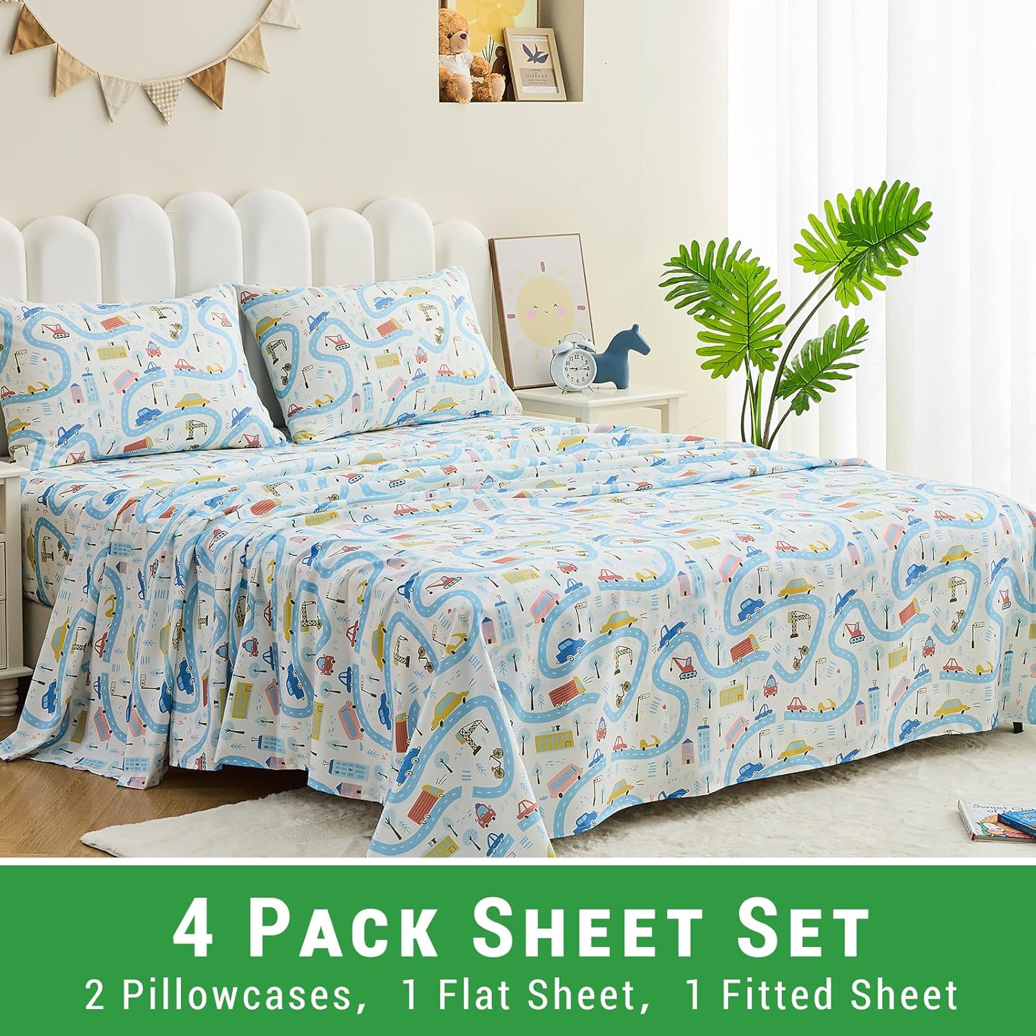 Designed for convenience, these sheets are machine washable and quick drying. They're perfect for busy families who want a hassle-free, durable, and easy-to-maintain bedding solution.