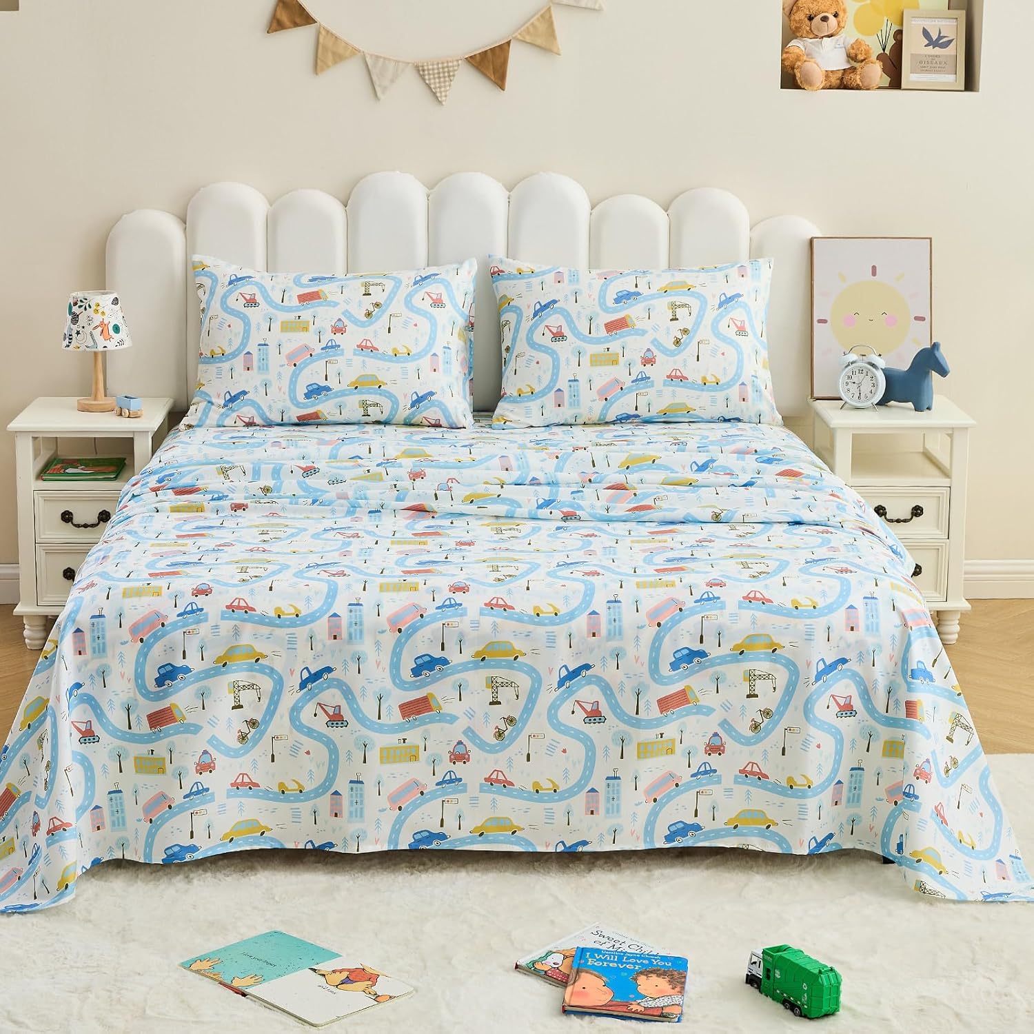 The set features vibrant, playful designs that spark imagination and bring joy to your childâs bedroom. Each print is carefully chosen to create a fun environment that kids will love.