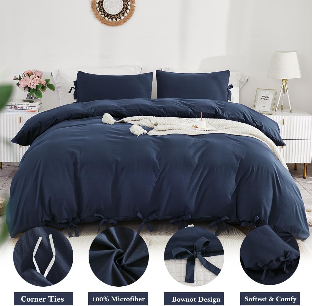 This Grayish Navy duvet cover set is more than just beddingâitâs a way to elevate your sleep space. The combination of soft microfiber, sleek bowknot design, and easy care makes it perfect for everyday use. Whether you're looking to create a calming atmosphere or just enjoy a restful night's sleep, this set delivers on both fronts.