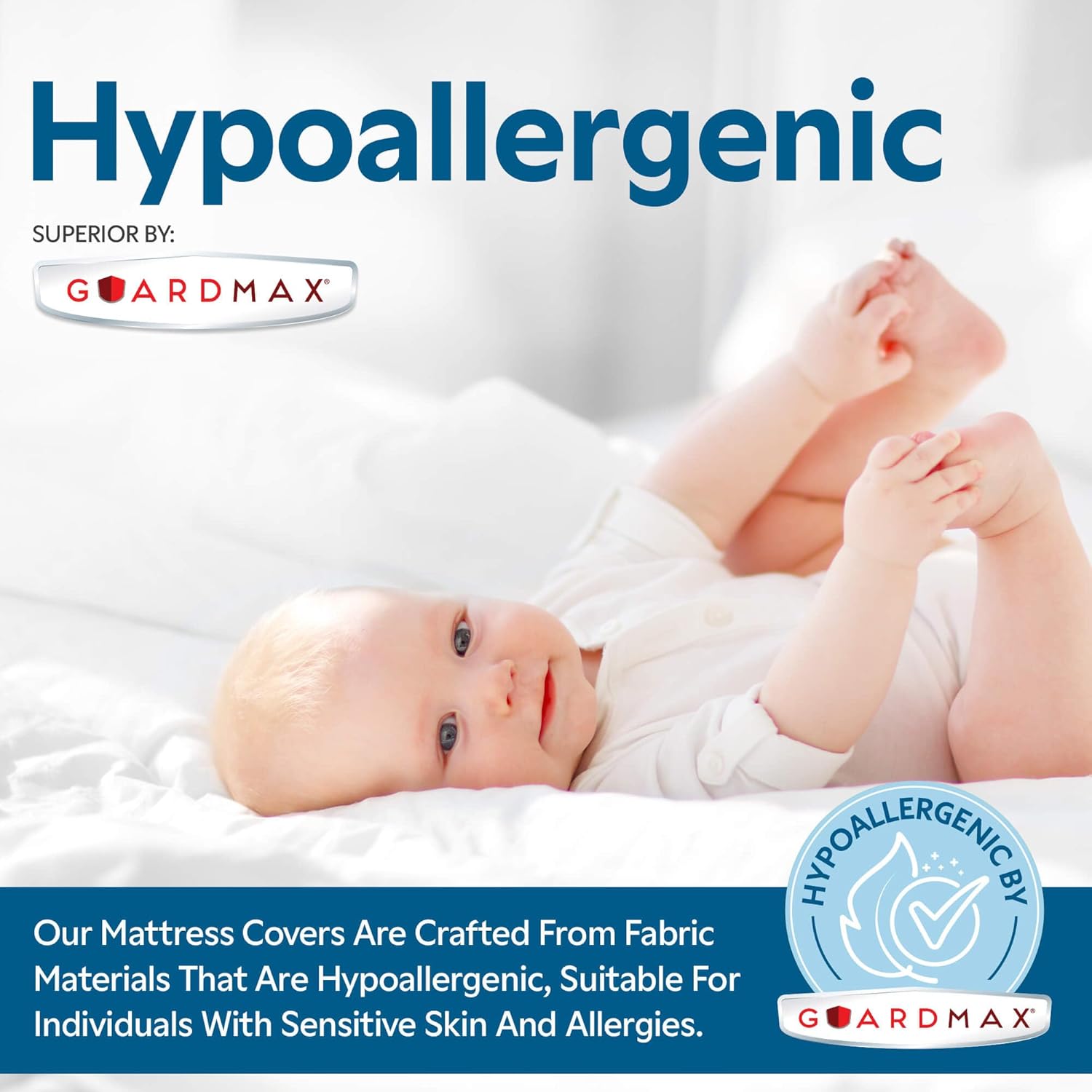 The full size (54x75) ensures compatibility with standard mattress dimensions, making it a versatile choice for bedrooms, guest rooms, or even commercial settings. With its combination of durability, comfort, and hygiene, the Guardmax Fitted Waterproof Mattress Protector is a must-have for anyone who values a clean, safe, and restful sleep.