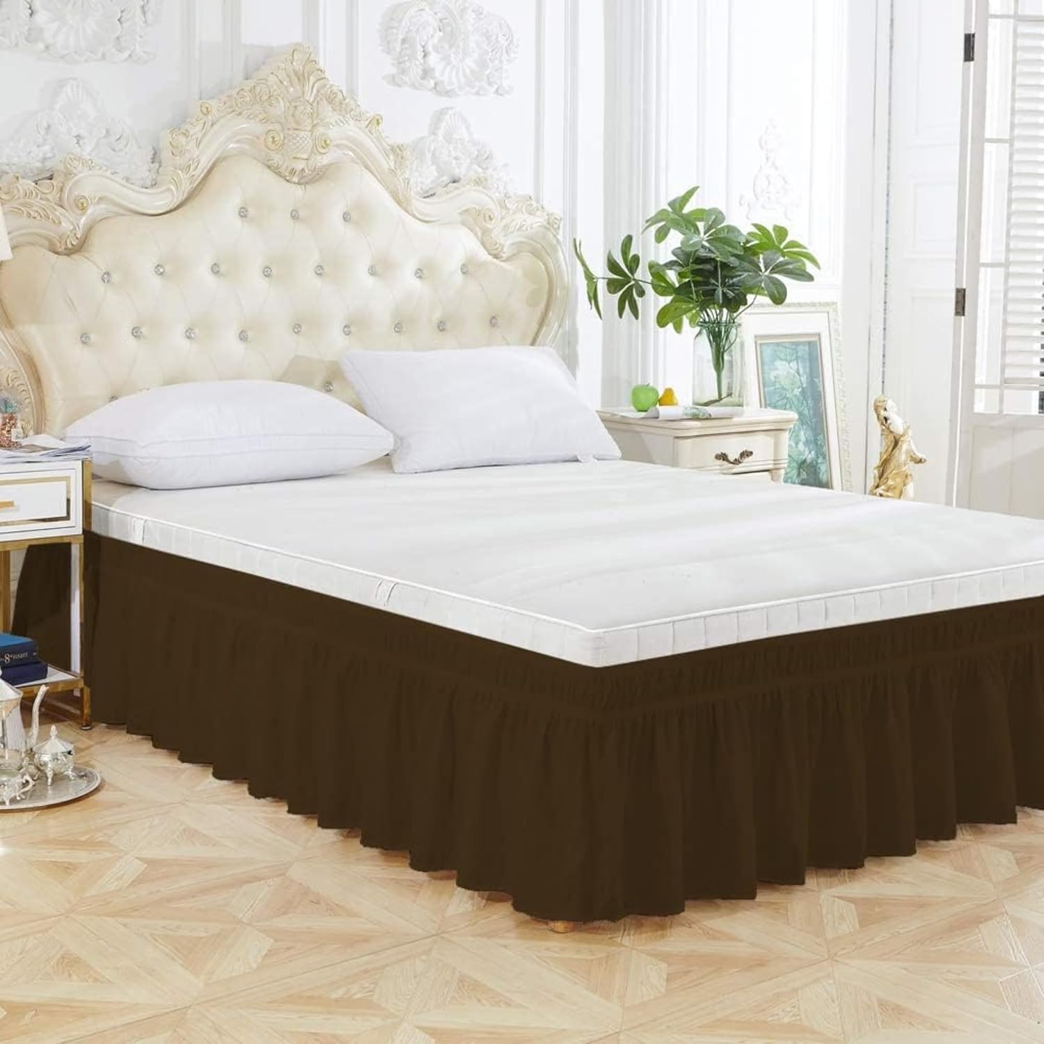 This adjustable elastic bed skirt is designed to provide a secure and snug fit, making it suitable for a wide range of mattress sizes. Its soft yet sturdy construction ensures it remains in place while adding a touch of elegance to your room. The brown color of this chocolate bed skirt is timeless and versatile, making it an excellent choice for any home décor.